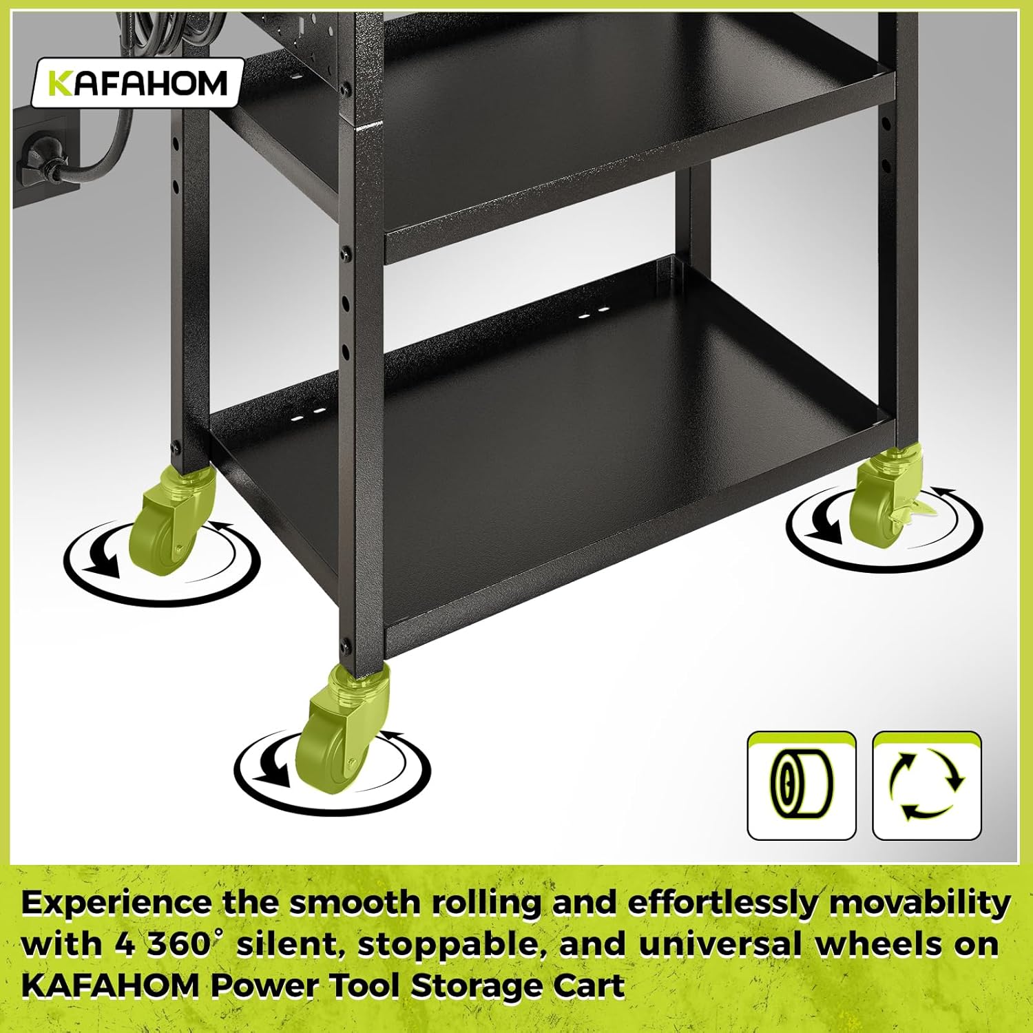 KAFAHOM Power Tool Cart with Charging Station, Rolling Cart with Drawer, Heavy Duty Power Tool Organizer with 360 Silent Wheels, Storage for Garage, Warehouse & Repair Shop