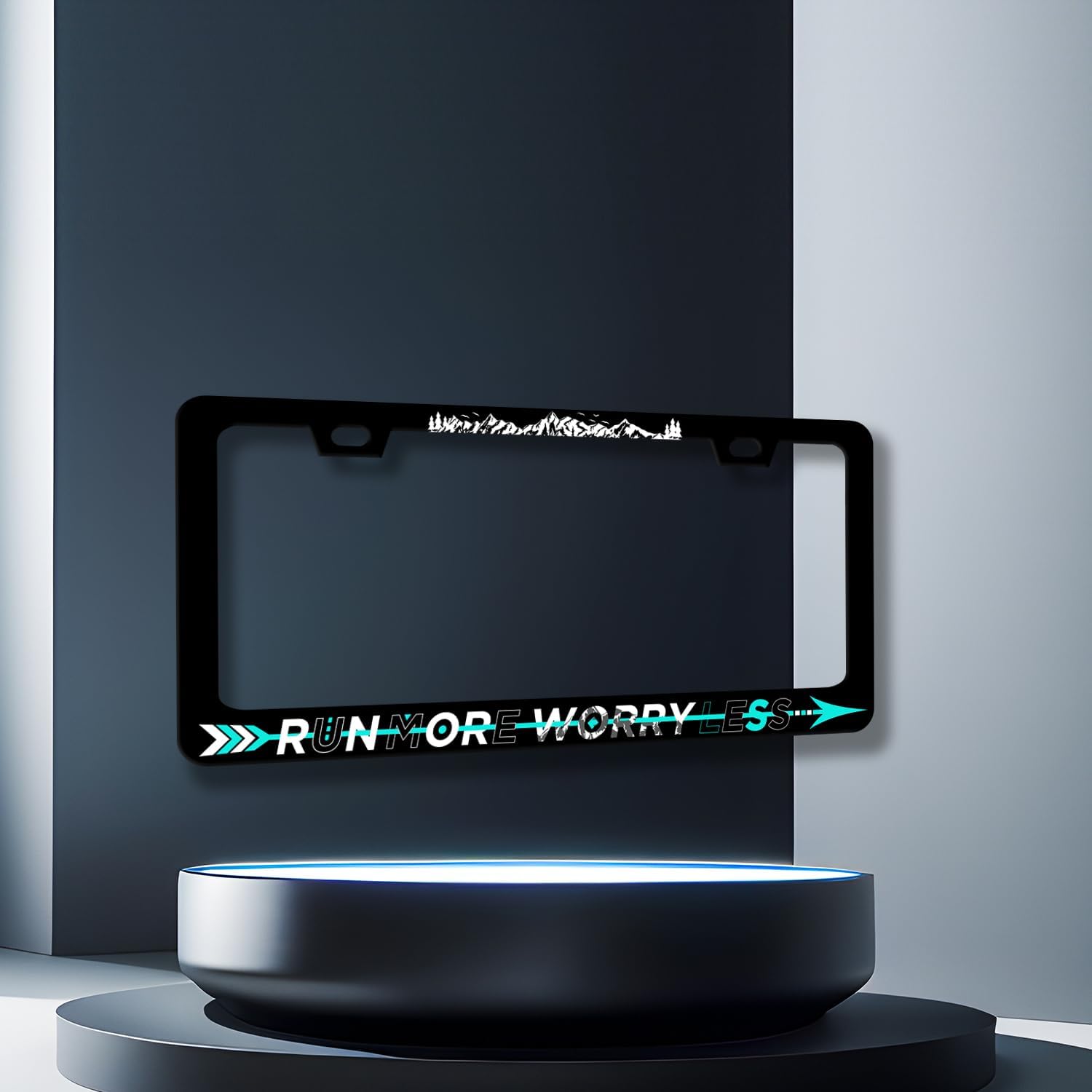Run More Worry Less License Plate Frame Mountain Arrow License Plate Holder Stainless Steel Front and Rear Car Tags Auto Parts Funny License Plate Decoration with Screws Men Women 12.2" x 6.2"