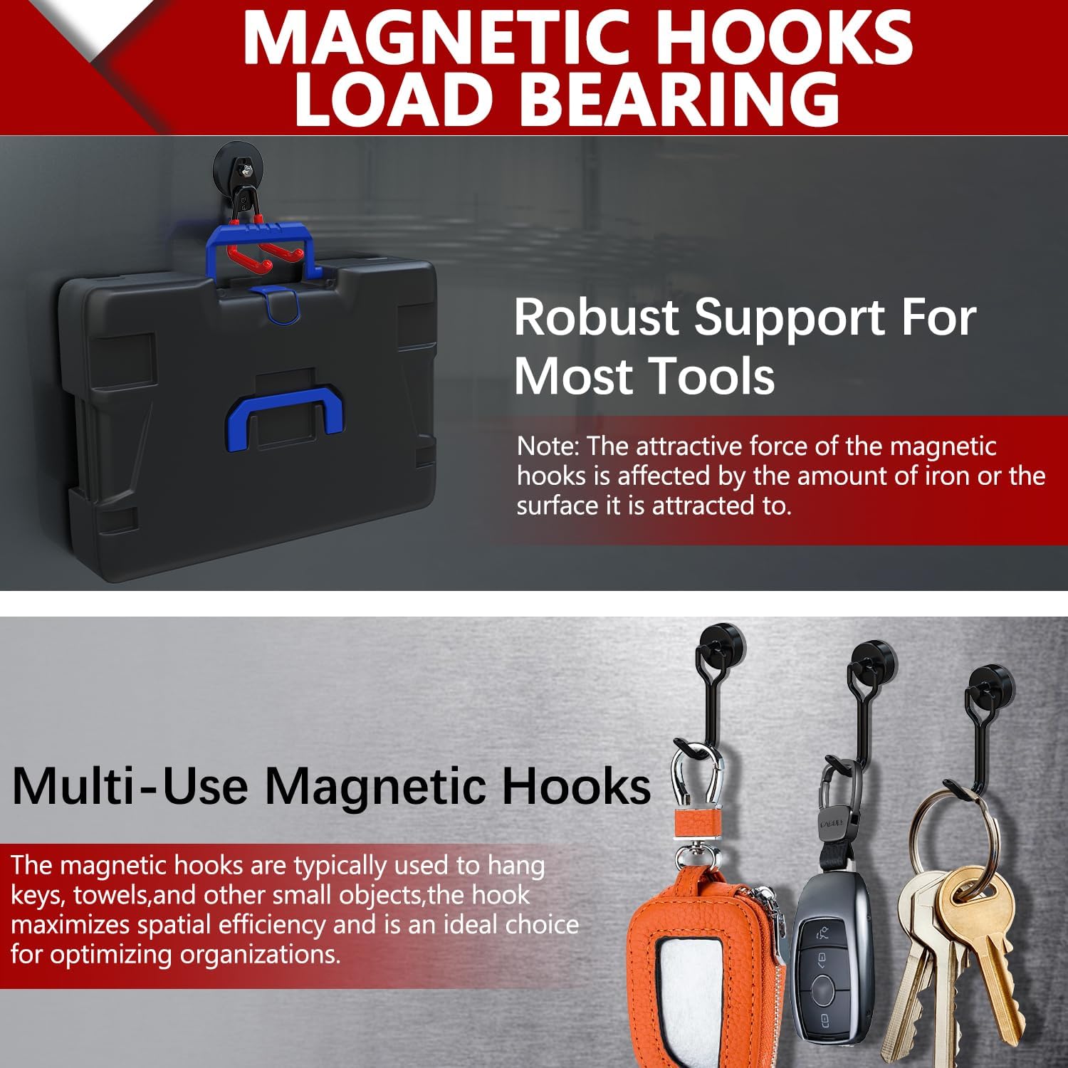 - Space Saving Heavy Duty Magnetic Hook: Our strong magnetic hooks offer an ideal solution for efficiently utilizing vertical garage storage space. The heavy duty magnetic hook is portable,versatile for use in garages, kitchens, offices, warehouses, gardens, and basements. These magnet hooks heavy duty help to reduce clutter and maximize available space to hang hoses, ropes, shovels, wires, cables, rakes and more