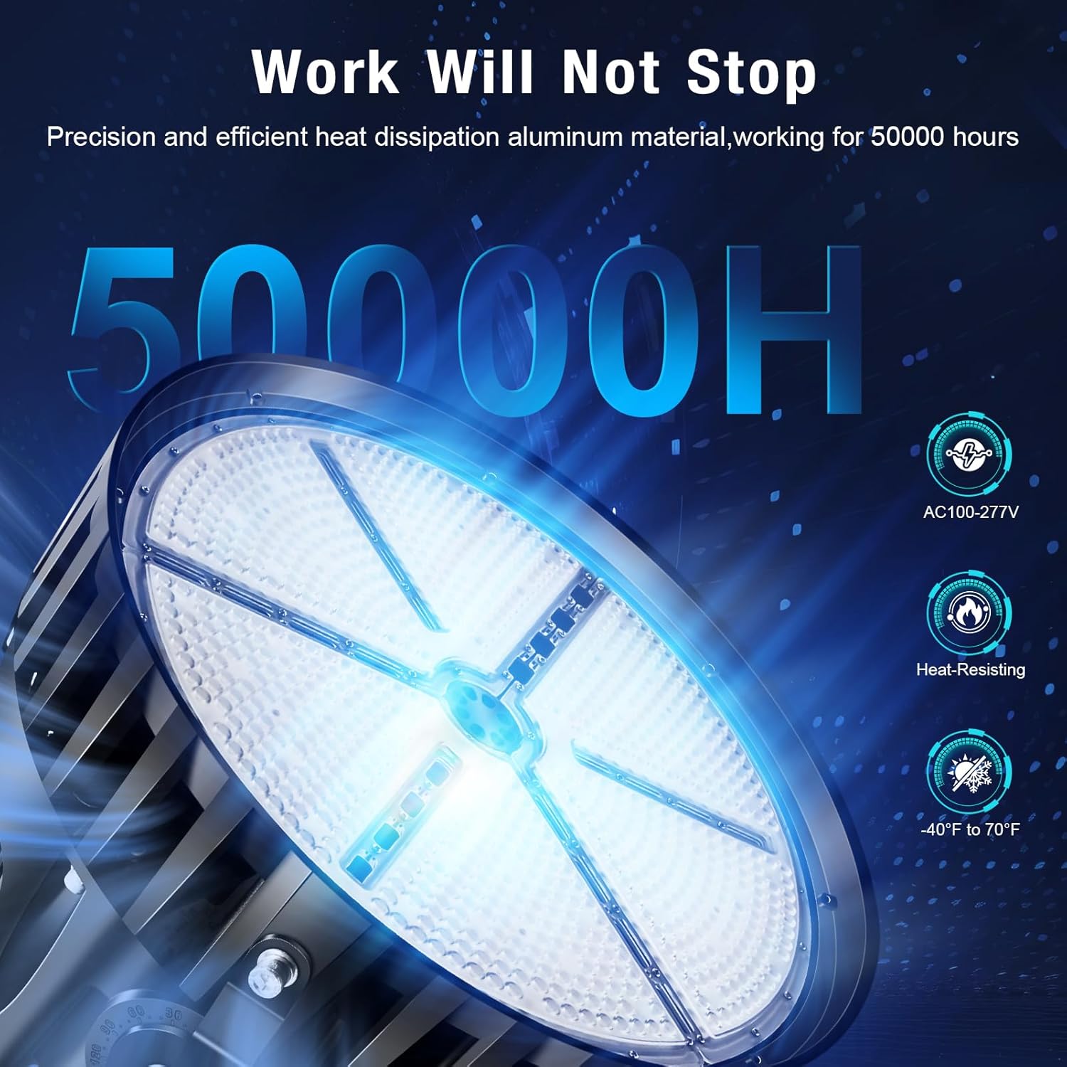 - High Performance: The rotatable bracket accurately locates the desired area, and the unique heat dissipation design allows the stadium lights outdoor LED to light up immediately at temperatures between -40 ° C and+70 ° C without waiting. These lights are used at a height of 20-70ft, with a professional 40 ° lighting angle that disperses more light on the ground, making them an ideal choice for creating a professional sports field. You can also install an external dimmer