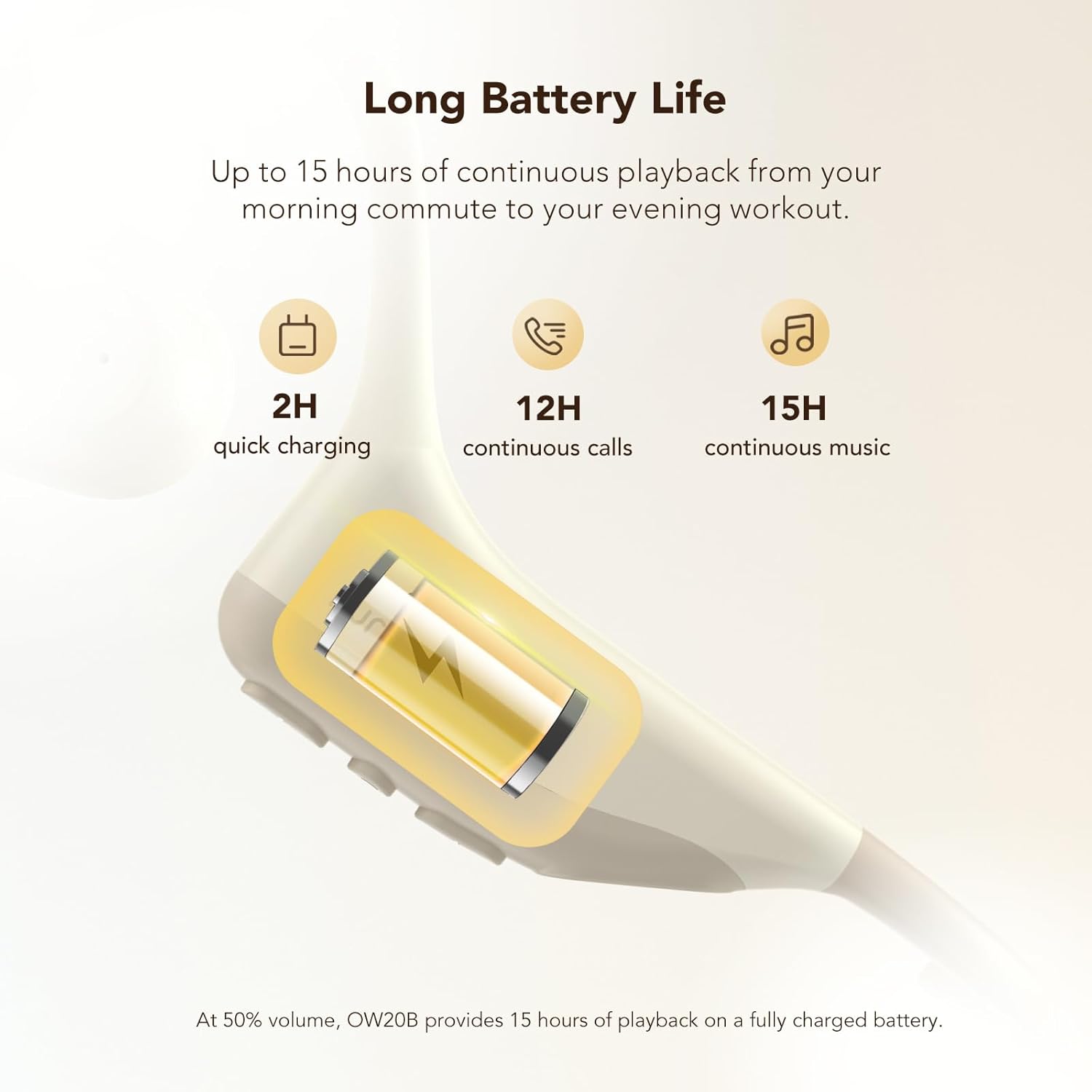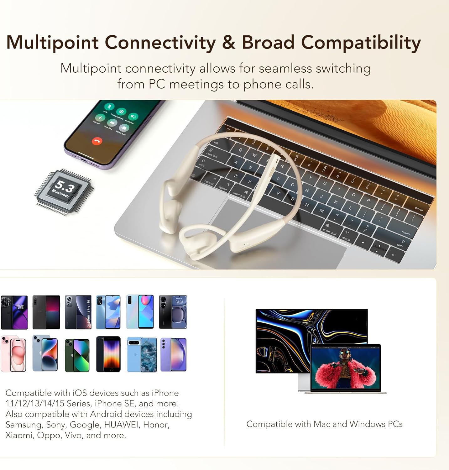 - Bluetooth 5.3 & Multipoint Connection: Experience stable, low-latency connections with OW20B Bluetooth headphones powered by Bluetooth 5.3 and enjoy freedom of movement up to 10 meters away without worrying about signal drops. The multipoint connectivity allows for a seamless switching between two devices, from online meetings on PC to phone calls. Compatible with most operating systems including iOS/Android/Window/ Mac/Linux, our open-ear headphones are the perfect companion for work, home office, business trips, driving, workouts and more.