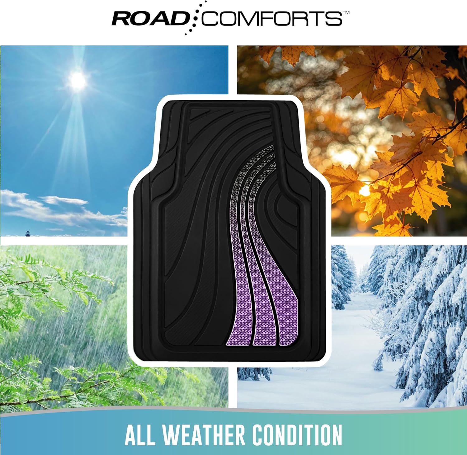 Road Comforts Car Floor Mats Full Set – Front & Rear Car Floor Mats with Aluminum Design, Anti-Slip Backing, All-Weather Protection, Trim-to-Fit Car Mats for Most Sedans, SUVs & Vans - Purple