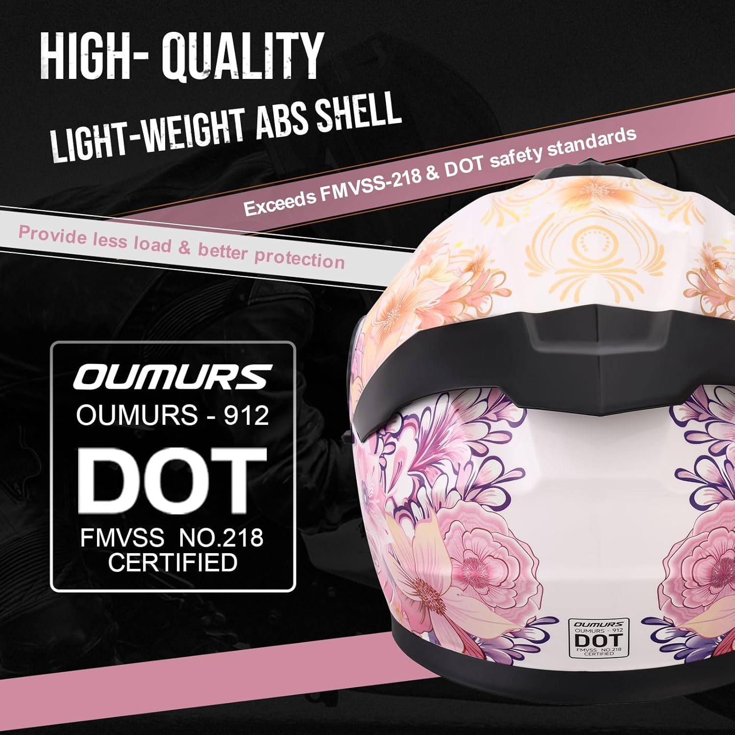 - [Safe and Reliable] - The OUMURS Full Face Helmet meets DOT FMVSS-218 Safety Standards,made of high quality ABS shell and EPS linings provide security for your driving, it's a good choice for you as a motorcycle helmet or adult UTV helmet