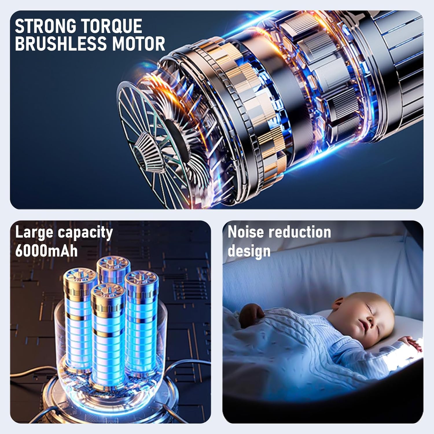 - ăPowerful 20000PA Car Vacuum ă: This cordless car vacuum cleaner features an upgraded high-speed brushless motor, providing powerful performance.The 3 adjustable suction power modes of 9000PA, 15000PA and 20000PA, With a strong20000PA suction power, this handheld car vacuum allows you to clean pet hair, crumbs, dust, and sand hidden in car seat or sofa.
