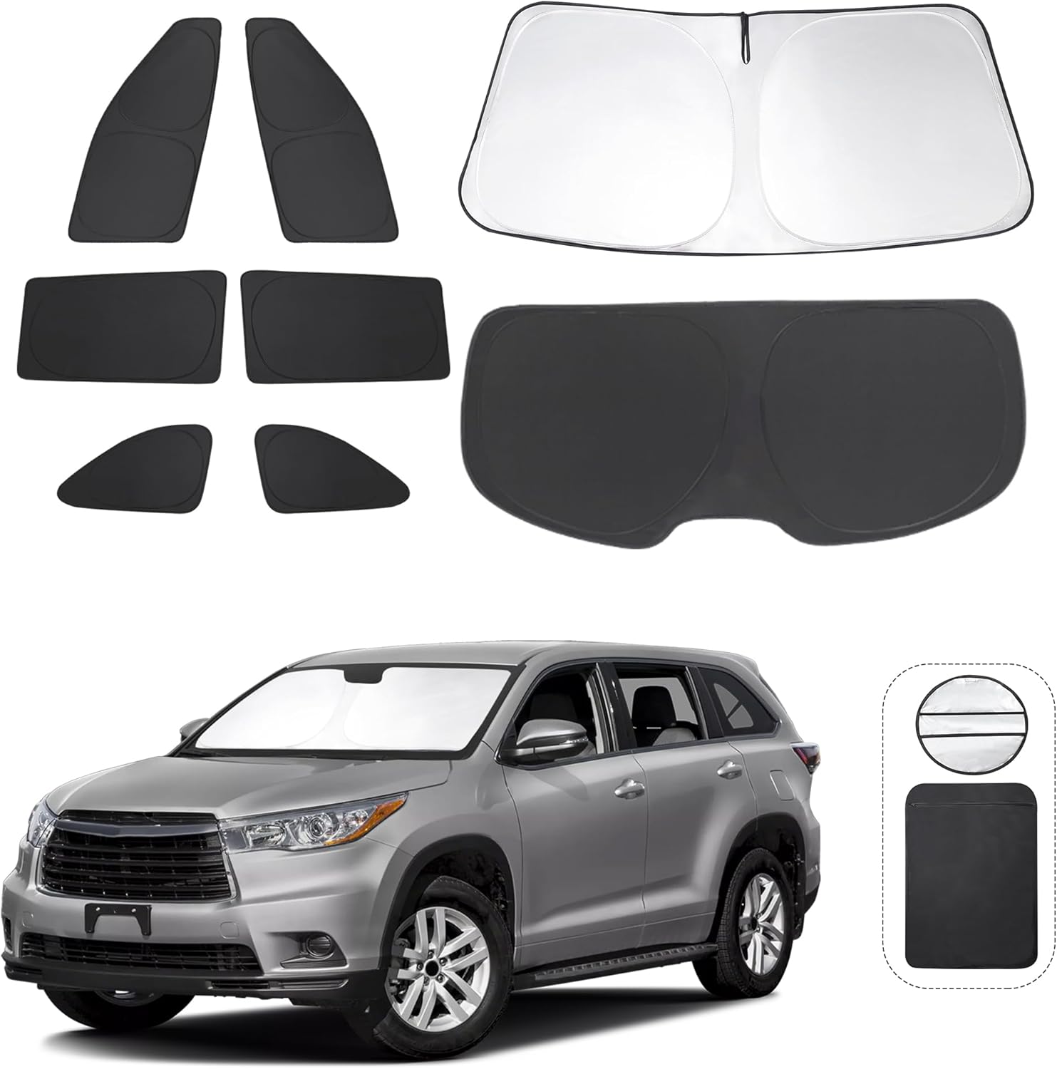 TINGLU Window Shades for Toyota Highlander 2014-2019 Accessories Side Full Windows Cover Camping Rear Triangular Windshield Sun Shade Sun UV Rays Privacy Protection 8PCS