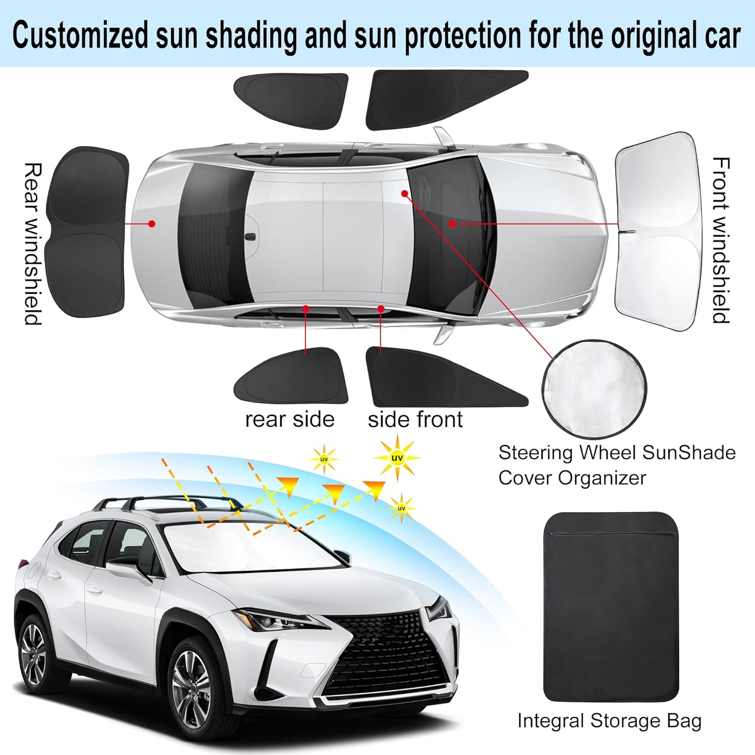 - Customized Design:The sun shade custom fit for Lexus UX 2019-2024 2025.Our window shade is according to the car size design,perfectly fit your car and does not need to trim.windshield sun shade solve the problem of light leakage and incompatibility of the old umbrellas.The sunshade designed for Lexus UX.