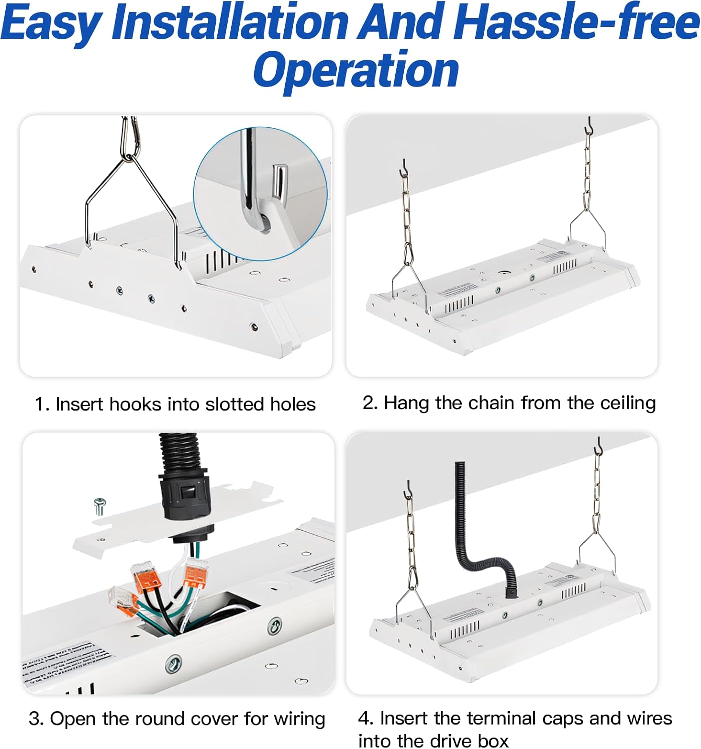 - 【Easy Installation & 5-Year Warranty】 The linear basement lights can be effortlessly hung from the ceiling with the included chain and V-shaped hook. The JTT linear shop light is ETL-certified, guaranteeing its safety and reliability. We offer a 5-year warranty and 24-hour after-sales service for your peace of mind.