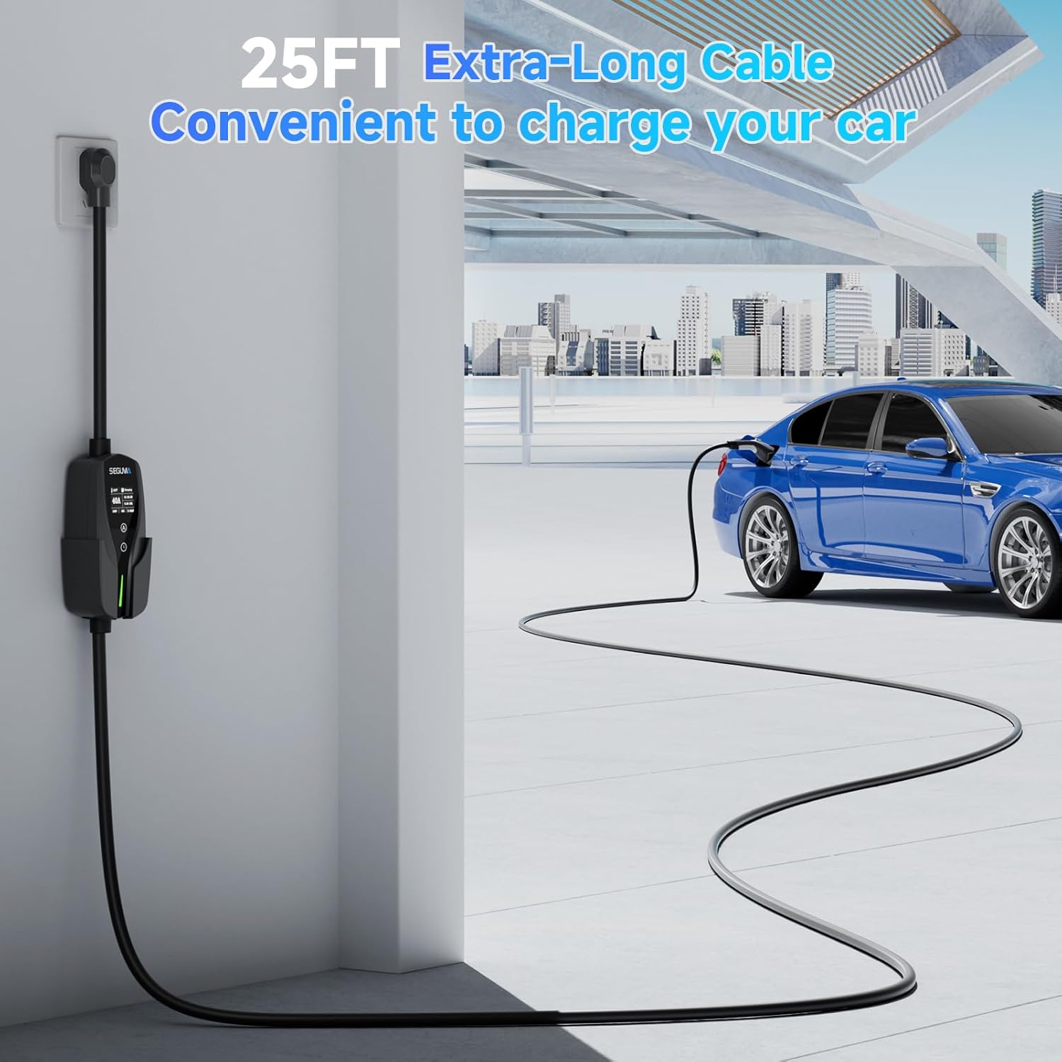 - Universal Compatibility: Seguma level 2 charger is engineered with standardized J1772 connector, works flawlessly with any electric vehicle featuring a j1772 charging port. No matter your vehicle model, you can easily plug in and start charging (Tesla needs j1772 to nacs adapter)