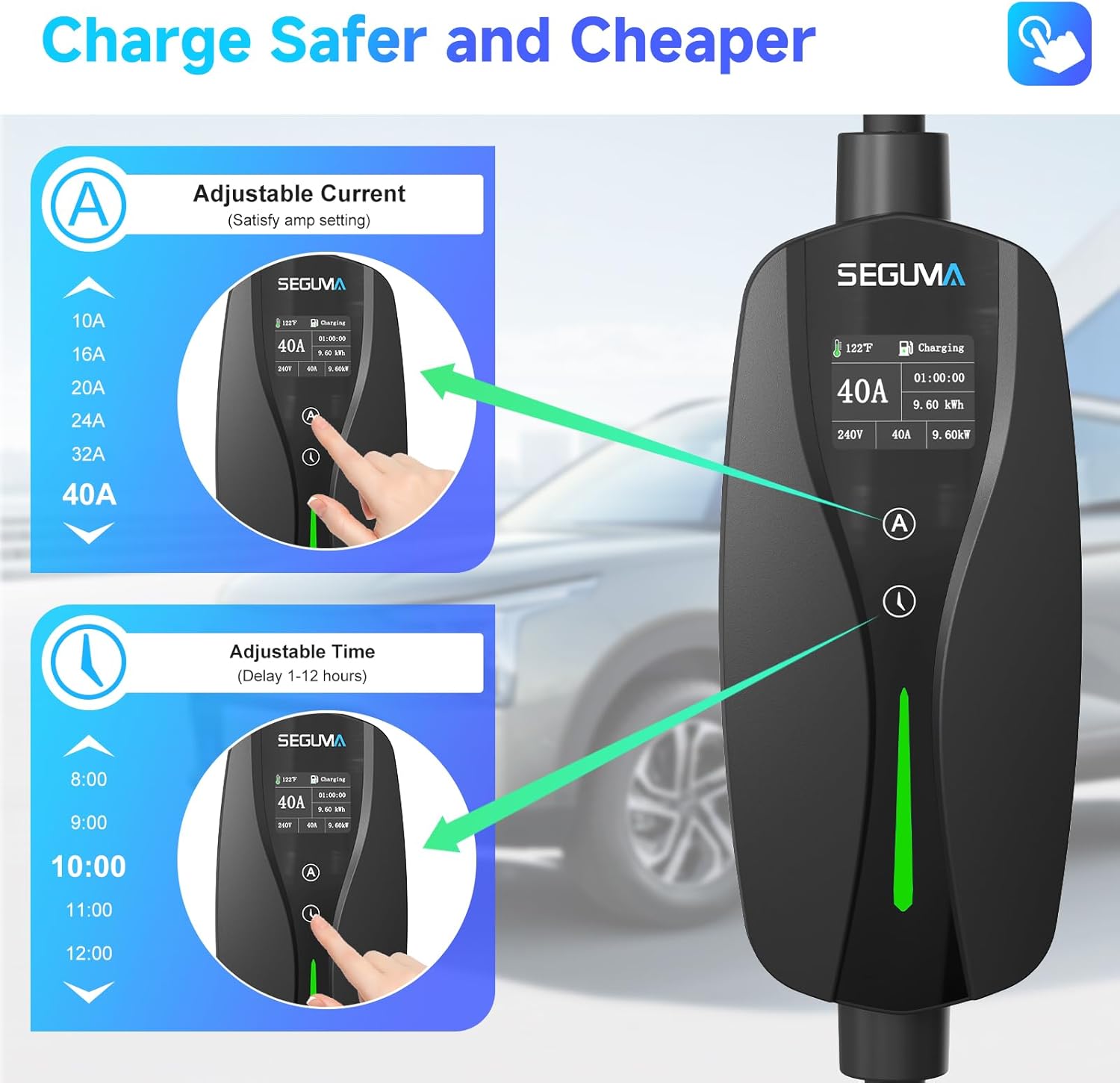 - Safe and Reliable: Feature with built-in advanced chipset, Seguma ev level 2 charger provides multi-layered protection against leakage, grounding issues, overvoltage/undervoltage, overcurrent, overcharging, overheating and short circuit protection. Additionally, the electric car charger will automatically shuts off once your vehicle car is fully charged, enhancing car safety