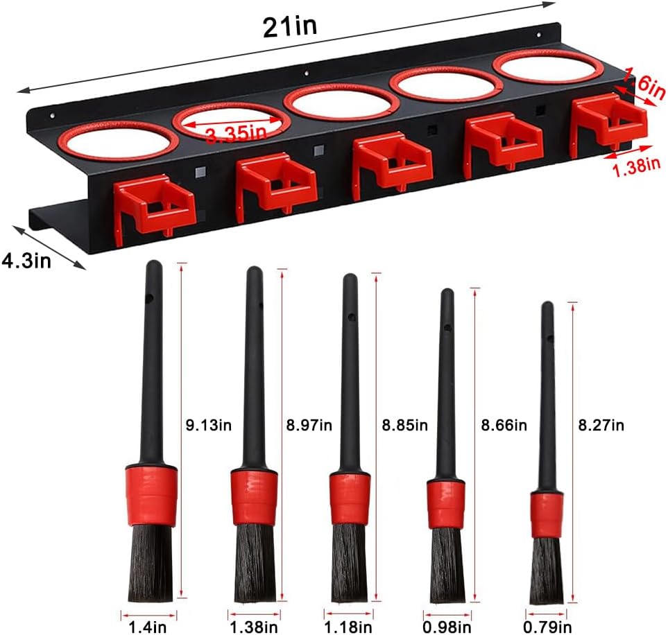 - Large capacity design: This spray can holder measures 21 * 4.3 inches and has ample storage space to accommodate 5 spray cans. The spray bottle holder is also equipped with 5 spray can hooks to meet the diverse needs of car beauty salons or households. Whether it's various types of spray cans, wax jars, abrasives, or other items, they can be neatly placed on the rack, making storage more organized.