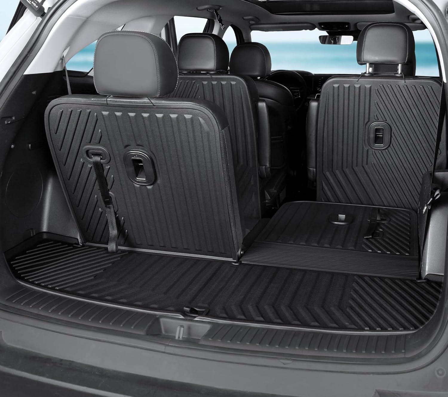 - Upgraded Design: Cargo mat with 2 and 1 design allows you to adjust the seat easily; extended floor mats covered the full isle way to the 3rd row