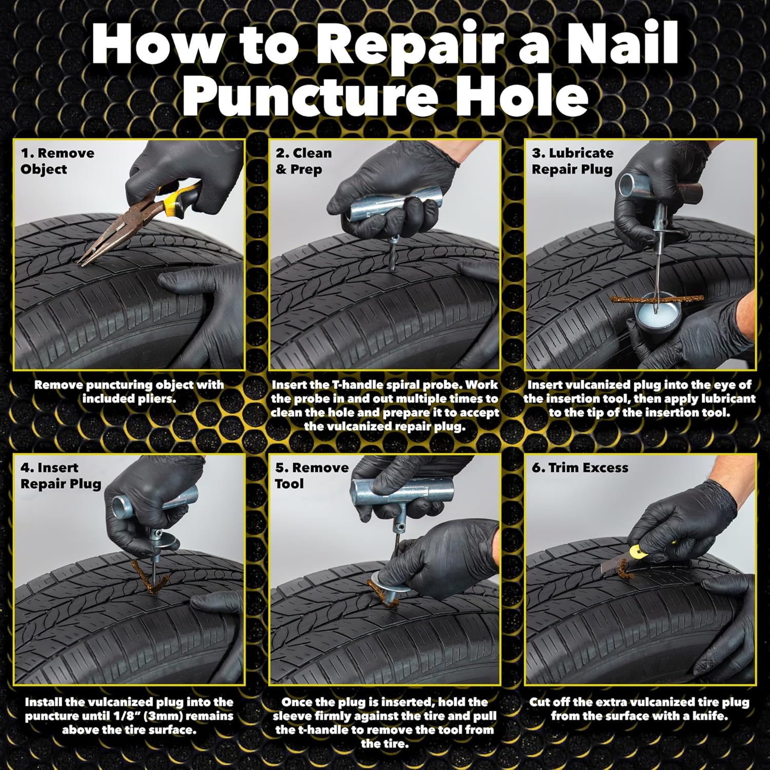 - Perfect Emergency Repair Kit - This is the most versatile kit you can own. 40 Repair strings mean you can repair up to 40 tires and you will never be left stranded. Kit comes with all the tools necessary to complete a tire puncture repair. Perfect size to fit in any vehicle and includes all the tools you need.