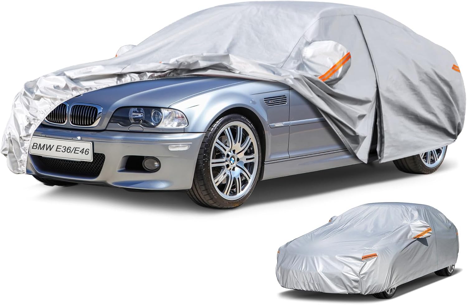 - ăProfessional Designă- 1 Driver door zipper for easy access. 2 Windproof straps at front & rear to fix your auto cover in heavy wind. 3 6pcs reflective strips, Remind other people at night. 4 Mirror pockets make the cover fit your vehicle better.