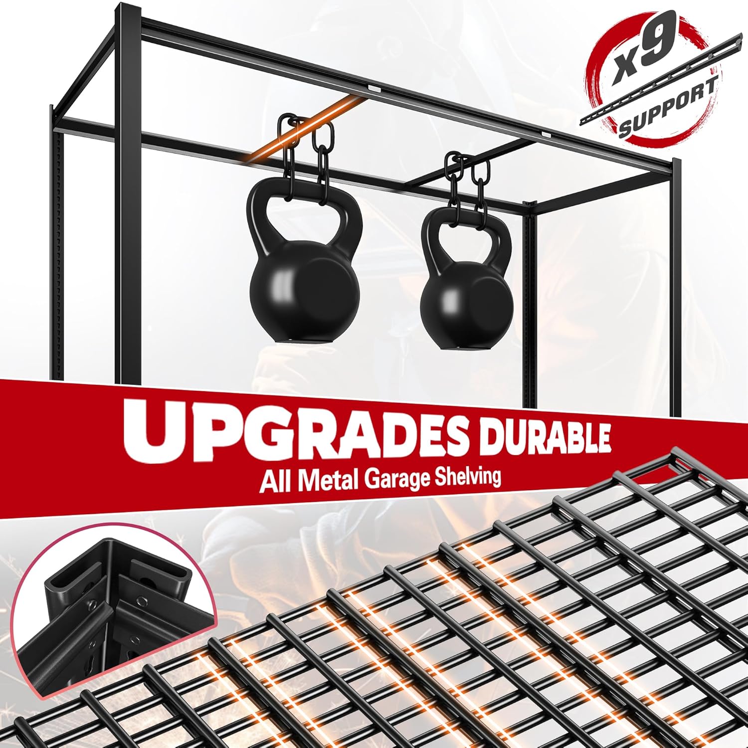 - ă2900LBS Heavy Duty ShelvingăThe combination of thickened metal mesh of wire shelving and double-layer metal shelves of columns gives the all metal shelves for storage an ultra-high load-bearing capacity of 2900LBS, please rest assured to store heavy items on the garage storage shelves such as toolboxes, vehicle parts, files, dumbbells, office supplies, etc