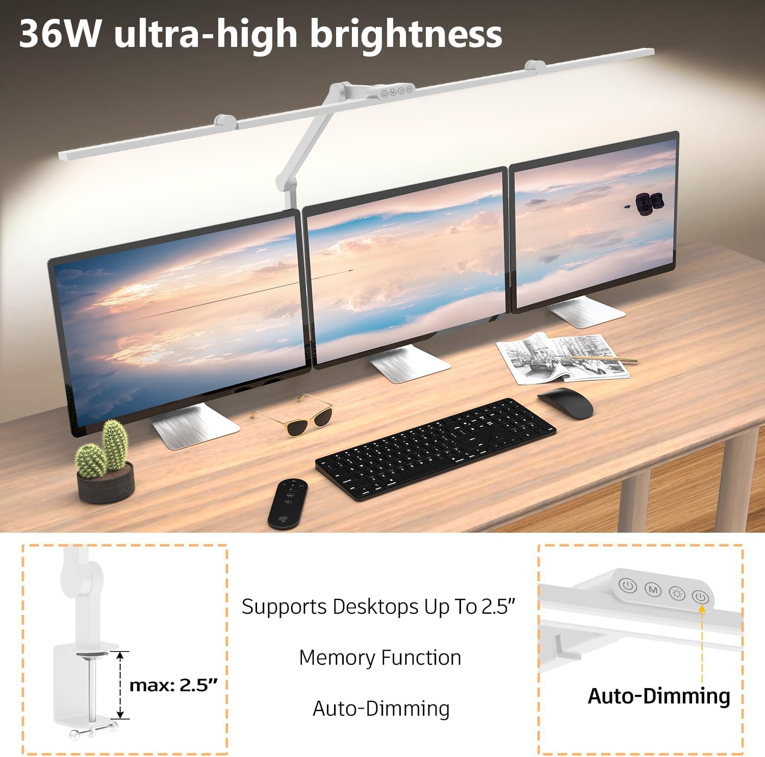 36W Ultra Bright Architect Desk Lamp with Clamp, Tall Overhead Rotatable Led Desk Light for Home Office, 47Inch Long Adjustable Monitor Light Bar with Remote for Computer Screen Desktop Table