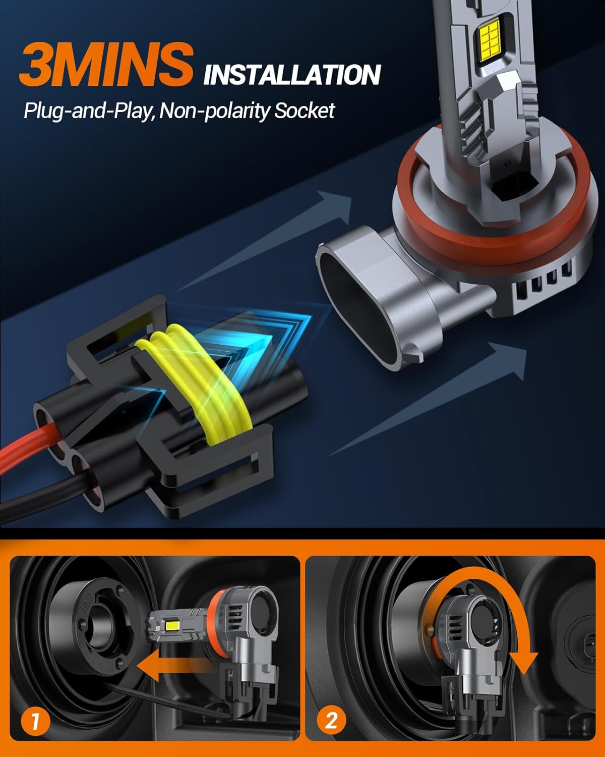- Universal Fit Design: SEALIGHT HB3/9005 H8/H9/H16/H11 bulbs are sized 1:1 and fit your bulb housing and factory plugs. No external drivers, wiring or common installation challenges. Plug and play, no tool assistance required