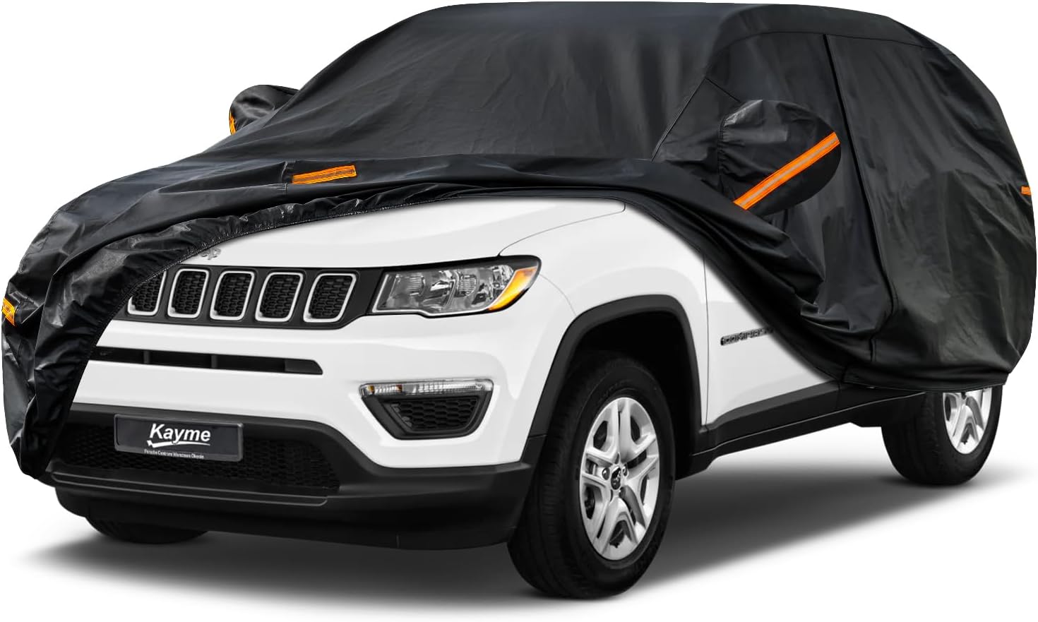Kayme 7 Layers SUV Car Cover Custom Fit for Jeep Compass (2006-2025) Waterproof All Weather for Automobiles, Outdoor Full Cover Rain Sun UV Protection.Black