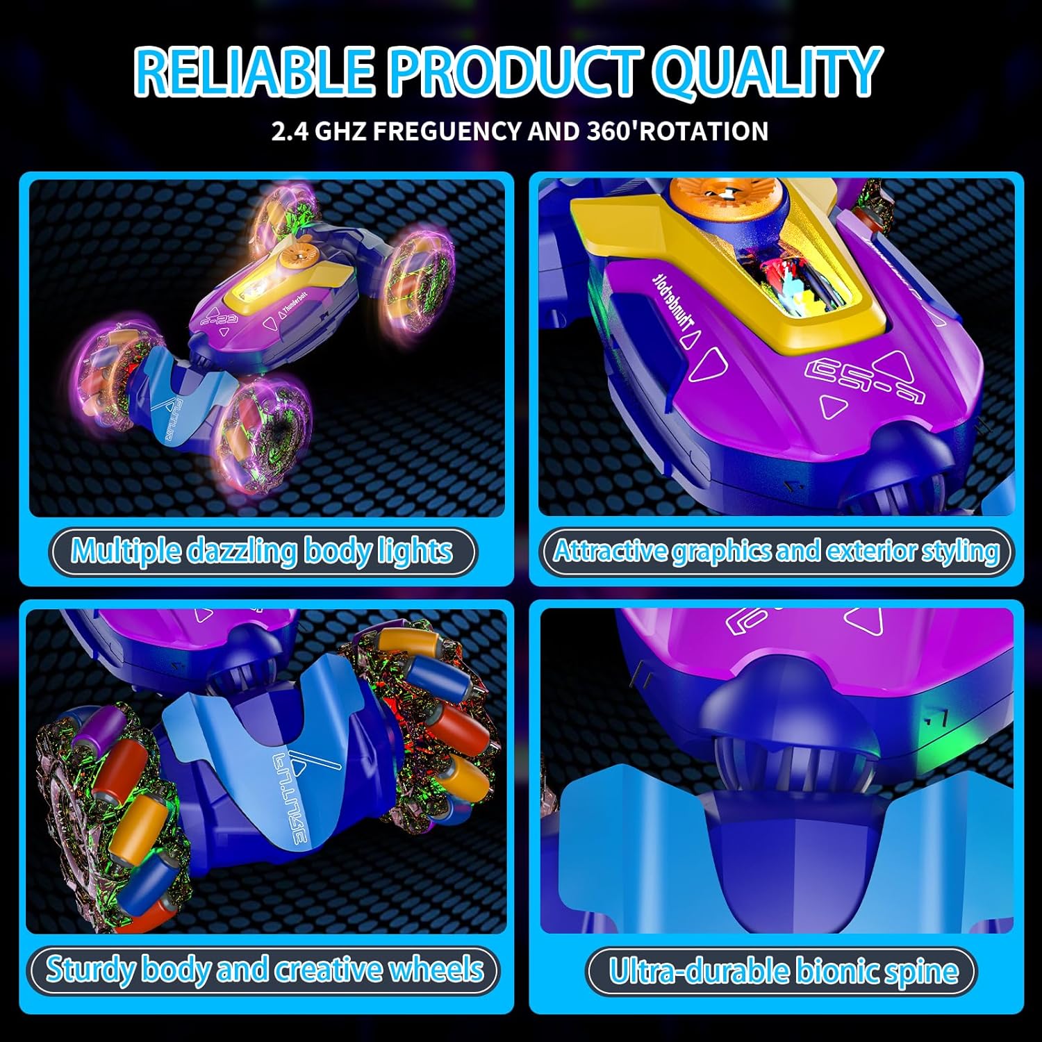 Gesture Sensing RC Stunt Car,Remote Control Car Toys for Ages 5-7-13,with Lights Music Spray,4WD 360° Spins All Terrains Kids Toys RC Cars,3-6 Year Old Boy Birthday Gift & 3-12 Best Gift for Kids