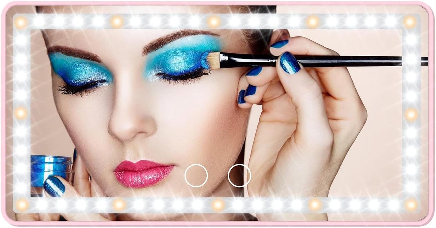 - ăDIMMABLE BICOLOR LED LIGHTSă-The car makeup mirror has 12 yellow lights and 48 white lights, which is 40% brighter and 60% less energy than normal bulbs. Short press the 2 sensor switches to replace 3 light colors: white, yellow, white and yellow. Long press for dimming according to what you need. 2500-6500K color temperature is equivalent to outdoor sunlight, the makeup is naturally no difference.
