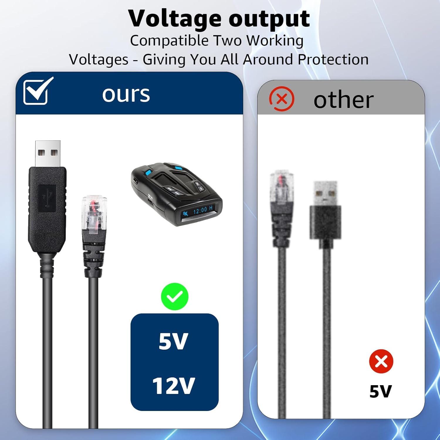 - Patented Dual Voltage Innovation:Experience seamless connectivity with Sousery's Radar Detector Cable, crafted with the latest patented technology to offer compatibility with both 5V and 12V interfaces