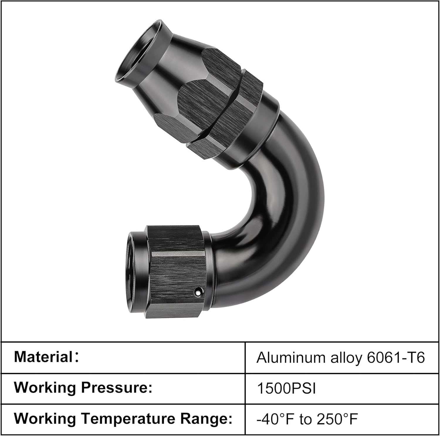 - [Product Size & Parameter] Size: 10AN. Thread Size: 7/8-14 UNF. Working Pressure: 1500PSI. Working Temperature Range: -40°F-250°F. Angle: 150 Degrees. Note: Please verify the hose size before purchase.
