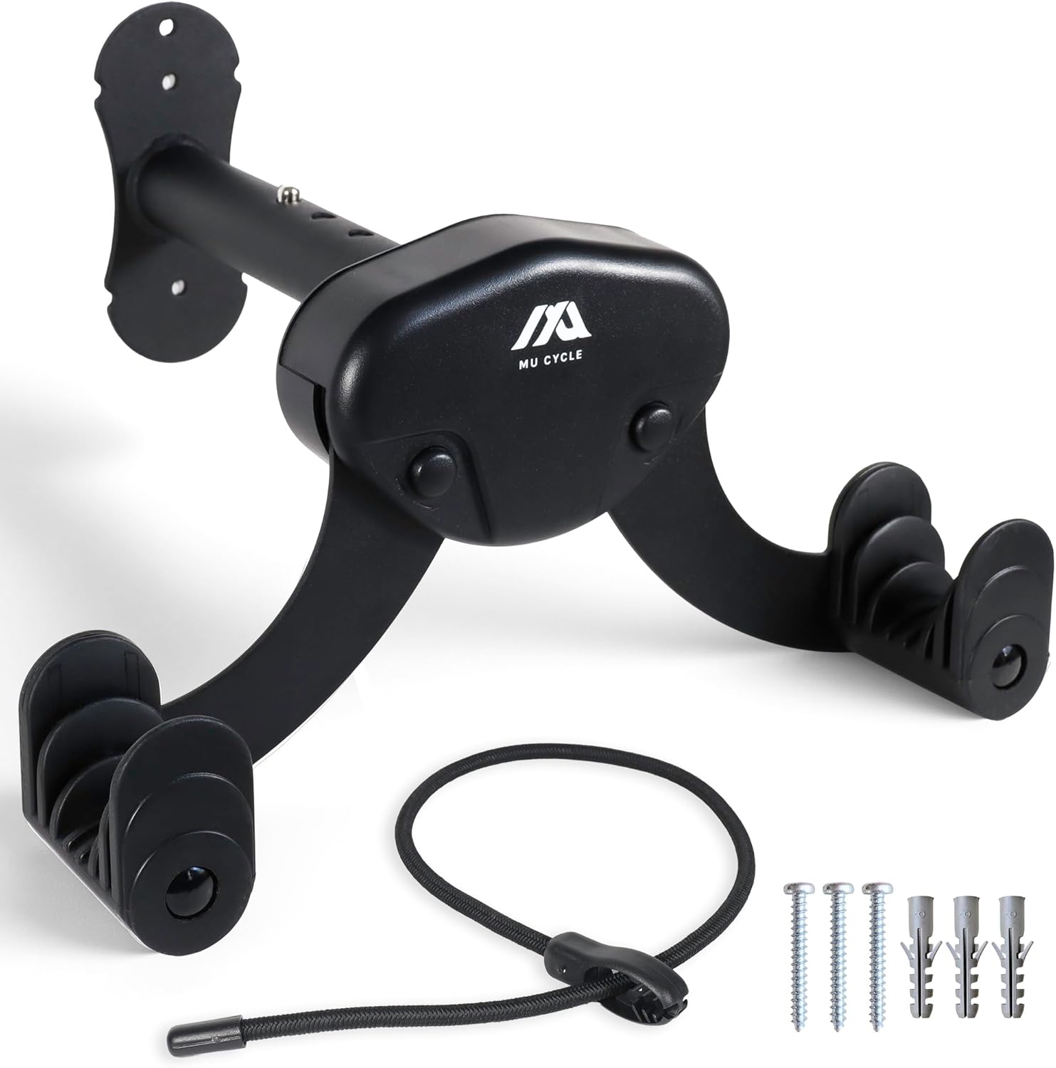- Bike Frame Protection – Soft rubber-coated hooks prevent scratches to aluminum, carbon, and steel frames. Includes elastic strap to stabilize the front wheel and prevent wall scuffing.