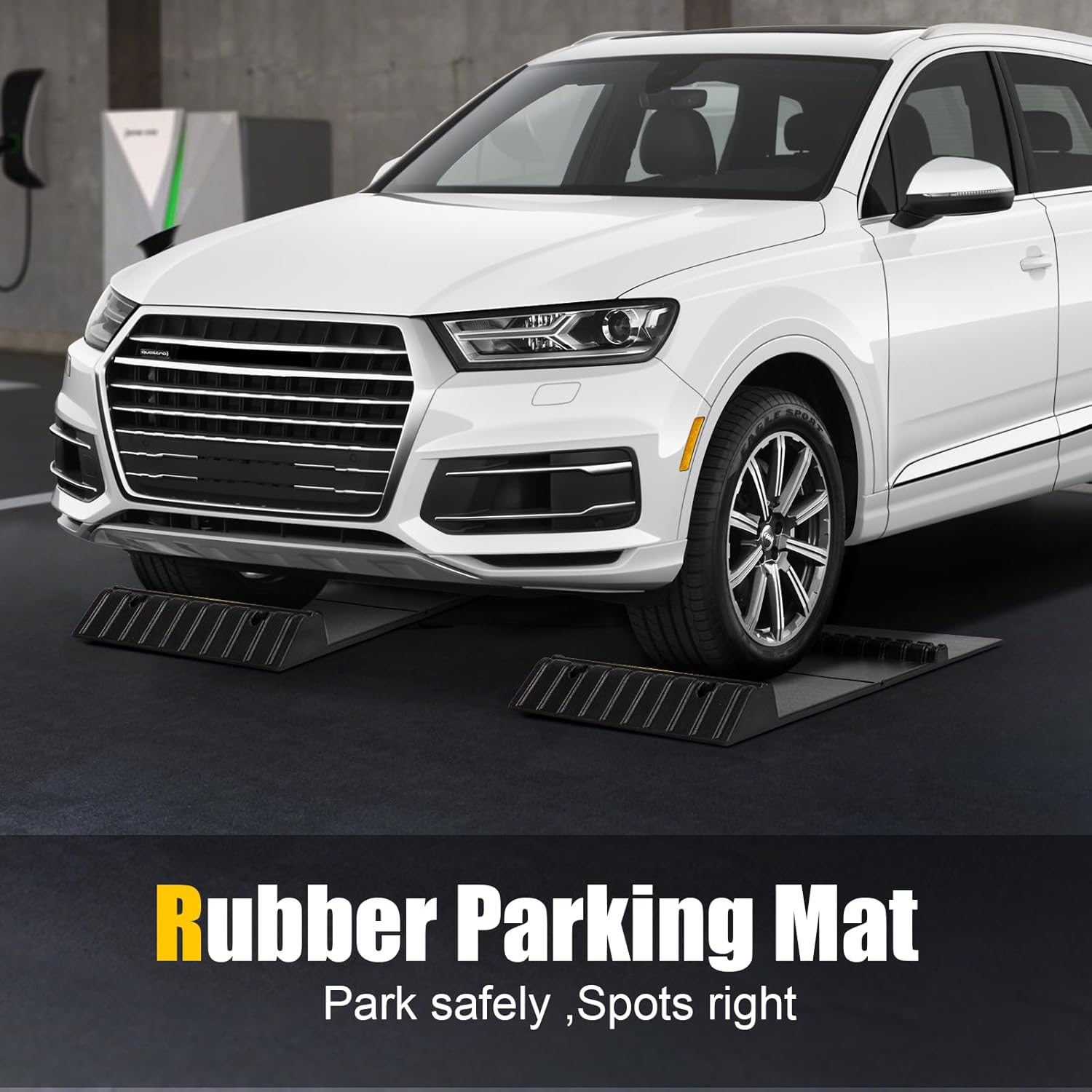 Rubber Garage Parking Mat 17.6 * 23.6 * 2.8" Heavy Duty Wheel Stoppers Anti-Slip Black Parking Aids Automotive Wheel Stabilizer 2 Packs