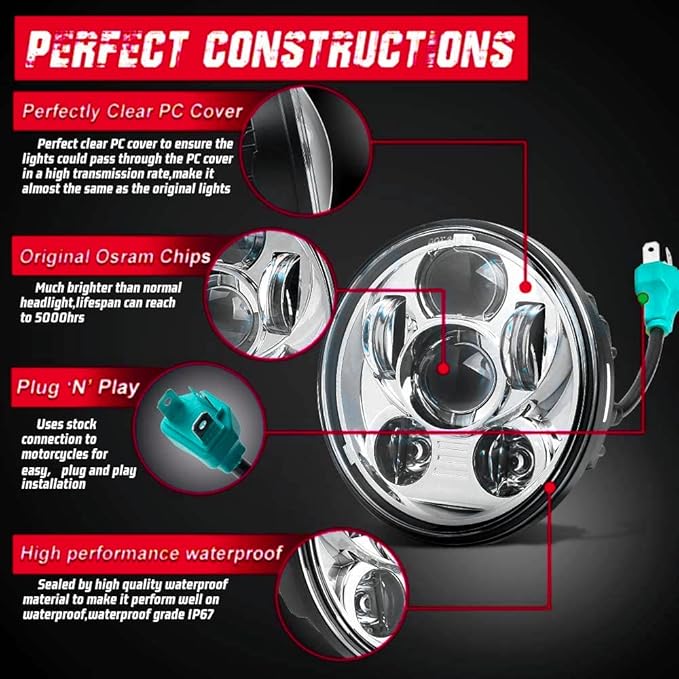 - ๐บ๐ธ Includerf - Chrome 5 3/4" LED Headlight, Fully adjustable, Installs directly to the OEM headlight bracket making Installation less than 30 minute.