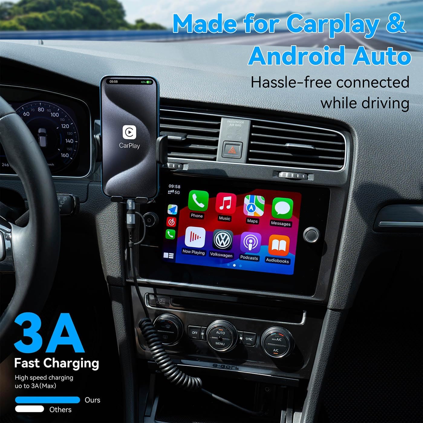 - 🔋【MFI Certified iPhone Charger】MFi certified USB lightning cable meet all Apple standards. The MFi Certified retractable iphone charger ensures a reliable and solid connection,be able to connect to the vehicles’computer to initiate CarPlay effortlessly.