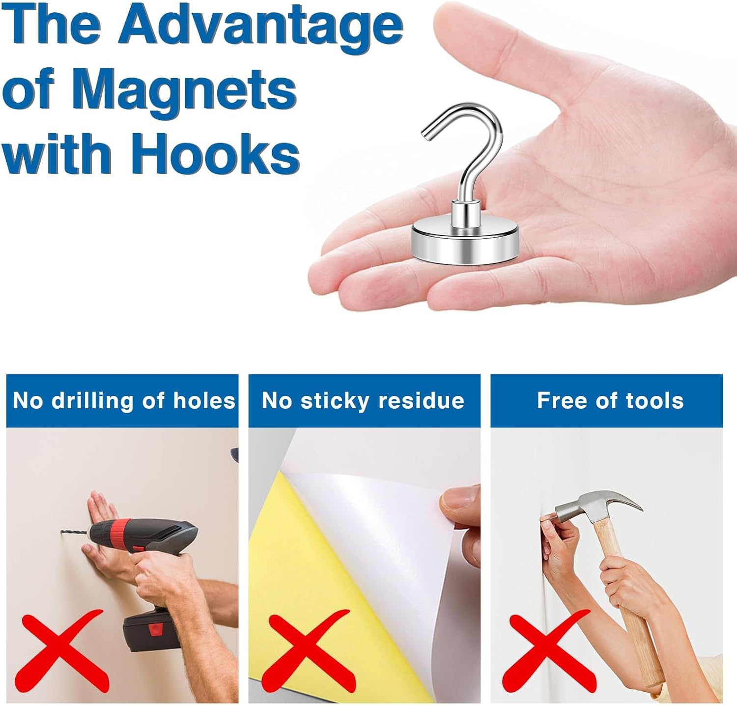 LOVIMAG Magnetic Hooks for Cruise Cabins, 110lbs Magnetic Hooks for Classroom, Strong Magnets with Hooks for Hanging, Neodymium Magnet Hooks for Fridge, Ceiling, Locker, Camper, Travel-25 Pcs