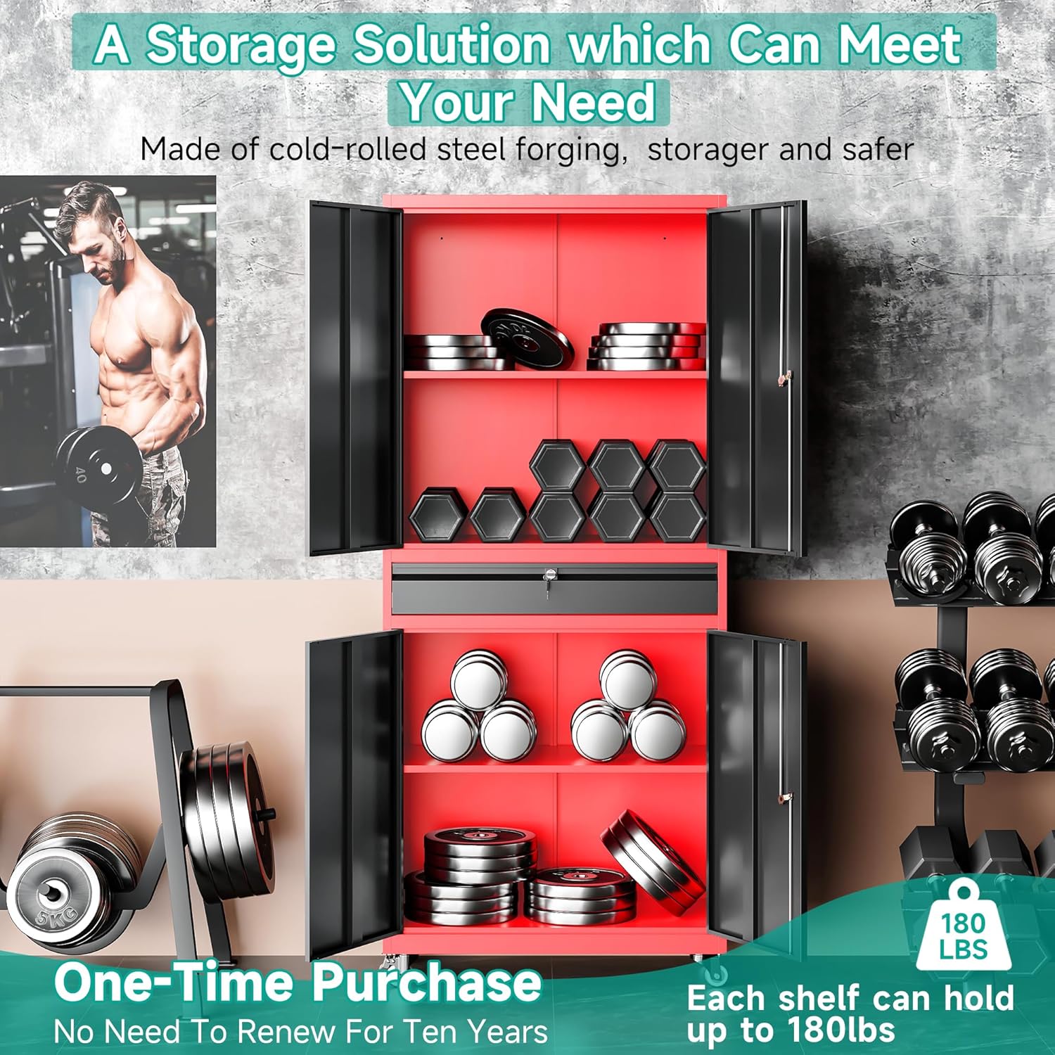 - Metal Cabinet with Drawer: The garage storage cabinet with doors and shelves have a lockable door with 2 keys and adopt a 3-point locking system, which allows you to store your valuables safely. This metal storage cabinet with doors and shelves can be used in the home, office, garage, warehouse, workshop, school, or anywhere you need additional storage.