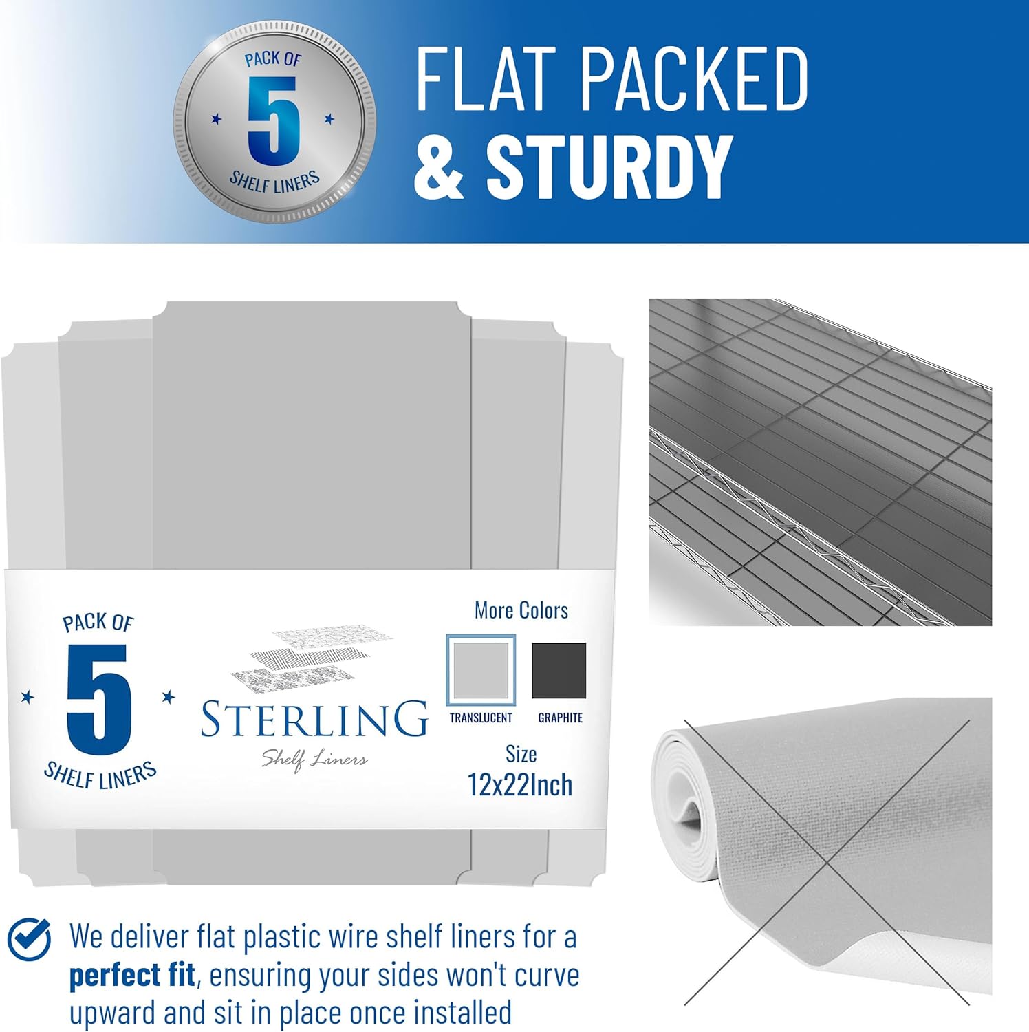 Shelf Liners for Wire Shelf System: Set of 5 in Clear: 12 x 22 inch: Plastic Wire Shelving Shelf Mats