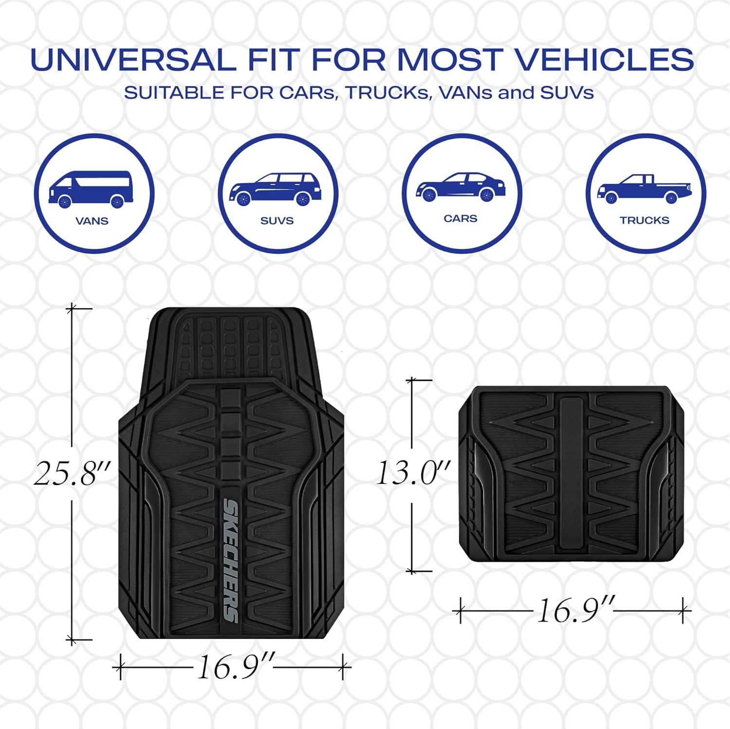 Skechers Car Floor Mats,Heavy Duty Rubber Car Mats Full Set,All WeatherFloor Mats,Waterproof Trim to Fit Universal Floor Liner Car Accessories,Automotive Floor Mats for Cars Trucks SUV,Black