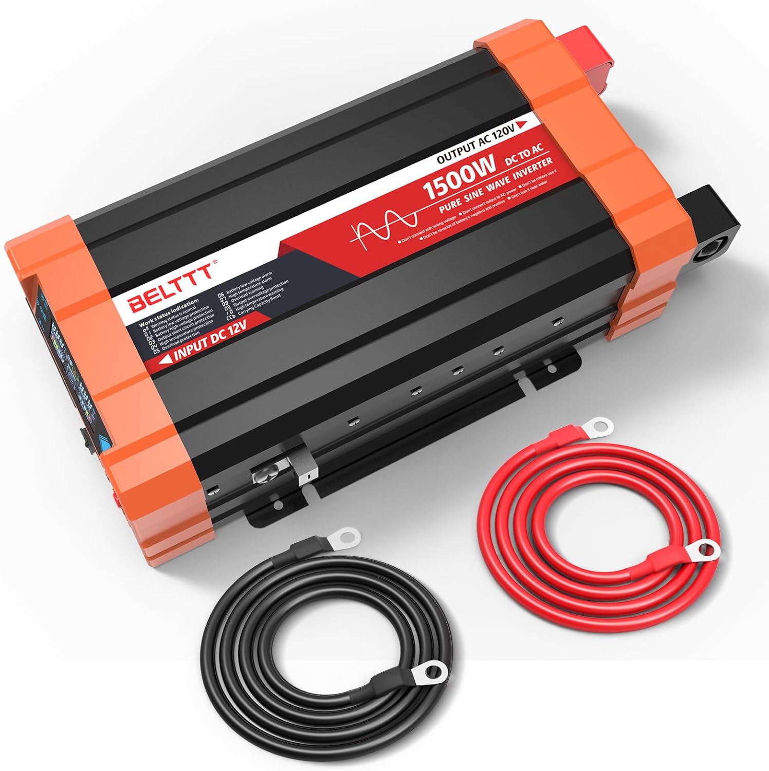 BELTTT 1500W Pure Sine Wave Inverter 12V to 120V AC, Car Power Inverter 12V to 110V Converter for RV, Truck, Solar, Off-Grid with Dual AC Socket, 5V 2.1A USB, Surge 3000W, Smart LCD Display