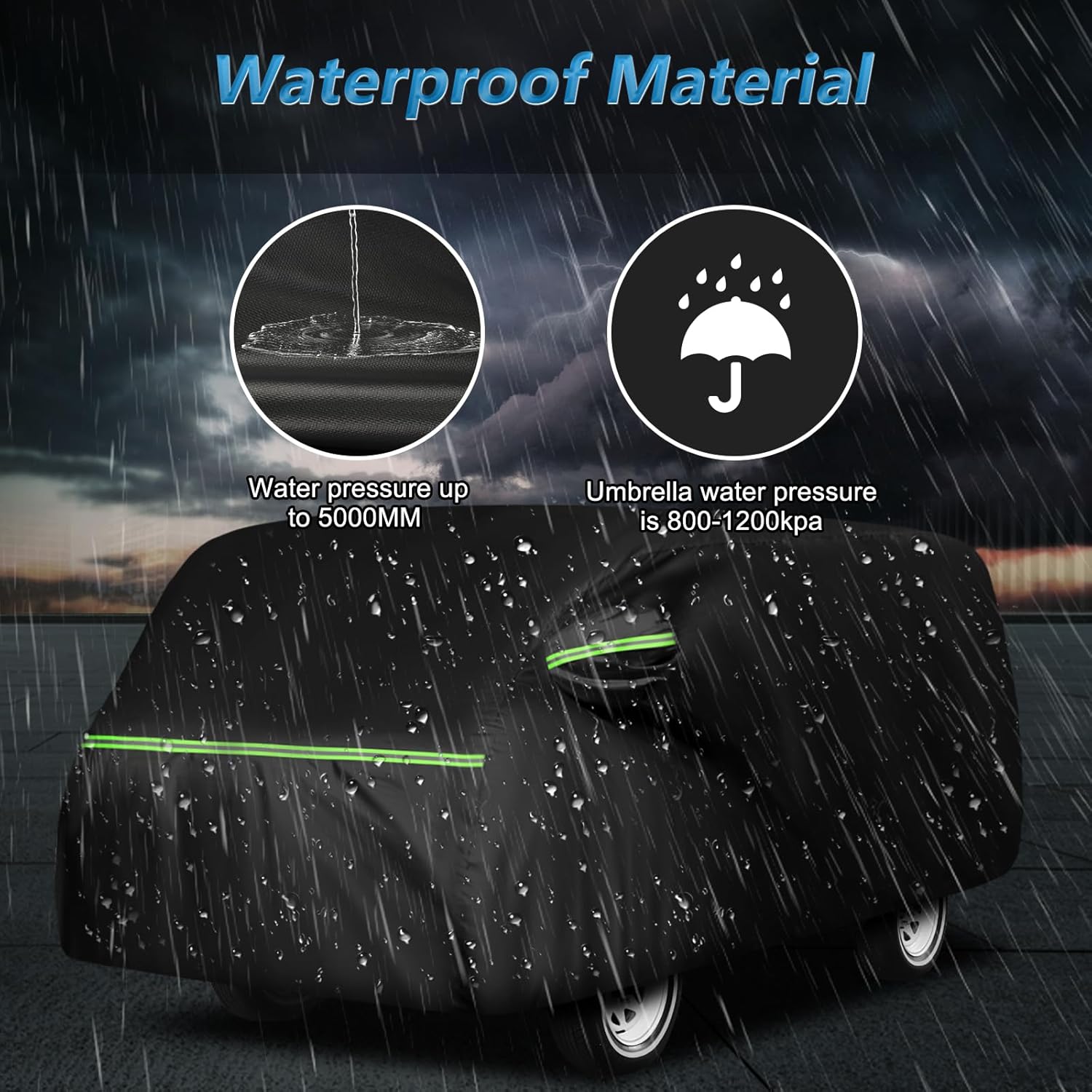- ăAll-Weather ProtectionăMade black 420D Oxford cloth and 2 times PU waterproof fabric as material, ensuring its quality is tough, durable, and safe in strong wind conditions. Suitable for all weather and seasons. Protects your vehicle and paint from rain, snow, sun, bird droppings, pollen, dust/dirt - suitable for all seasons (spring, summer, fall, winter).