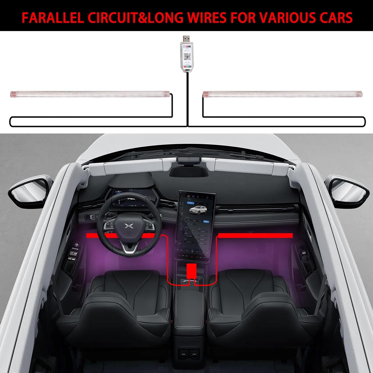• Easy to install: Our car led USB light is flexible and easy to install. Double-sided adhesive straps, directly inserted in USB port, test the lights, then adhere the light under the dash and ready to use. Please keep the USB port dry