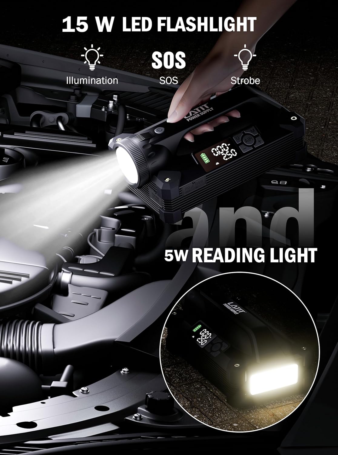 - Powerful Performance - Start low voltage or dead batteries in seconds with LATIT Super peak 6000A jump Starter, is capable of jump-starting 12V vehicles up to 10L gas or 8L diesel engines, This makes it suitable for a wide range of 12 volt vehicles, such as cars trucks, motorcycles, ATVs, snowmobiles, lawnmowers, yachts, etc., No more waiting anxiously for roadside assistance or help.