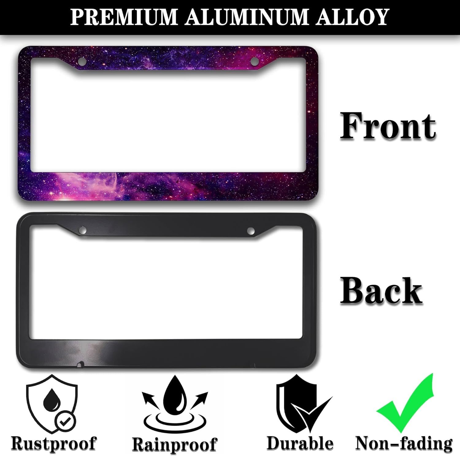 License Plate Frames Multicolor License Plate Cover Beautiful Galaxy Space Universal Aluminum Car Accessory 2 Pack with Screw Covers Set