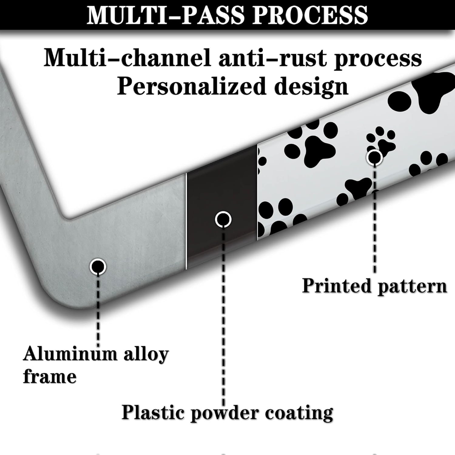 License Plate Frames Black, White, and Red License Plate Bracket Dog Footprints Universal Aluminum Car Accessory 2 Pack with Screw Covers Set