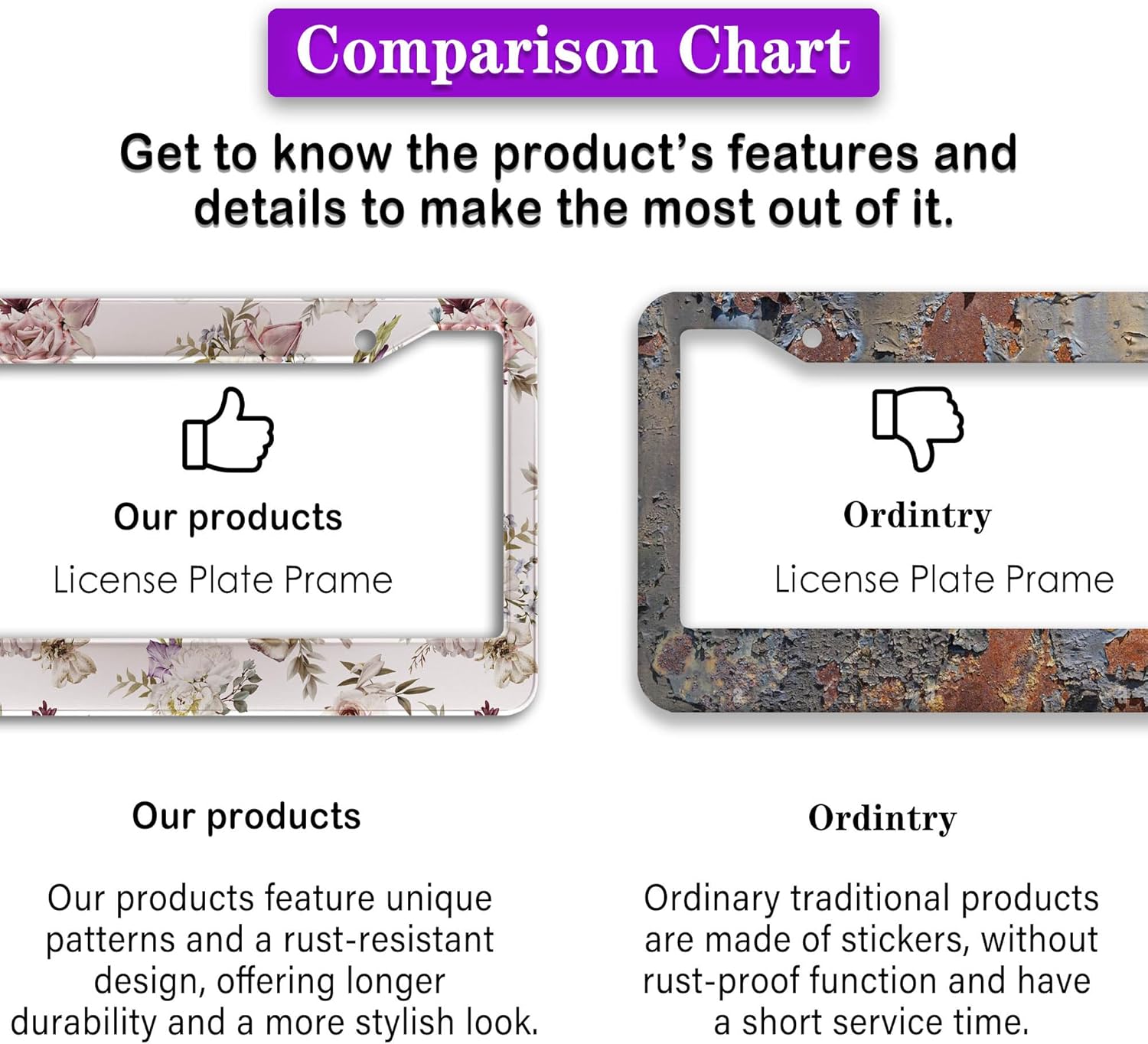 License Plate Bracket for Women Multicolor License Plate Frames for Men Vintage Floral Aluminum Metal Car Accessory 2 Pack with Screw Covers Set