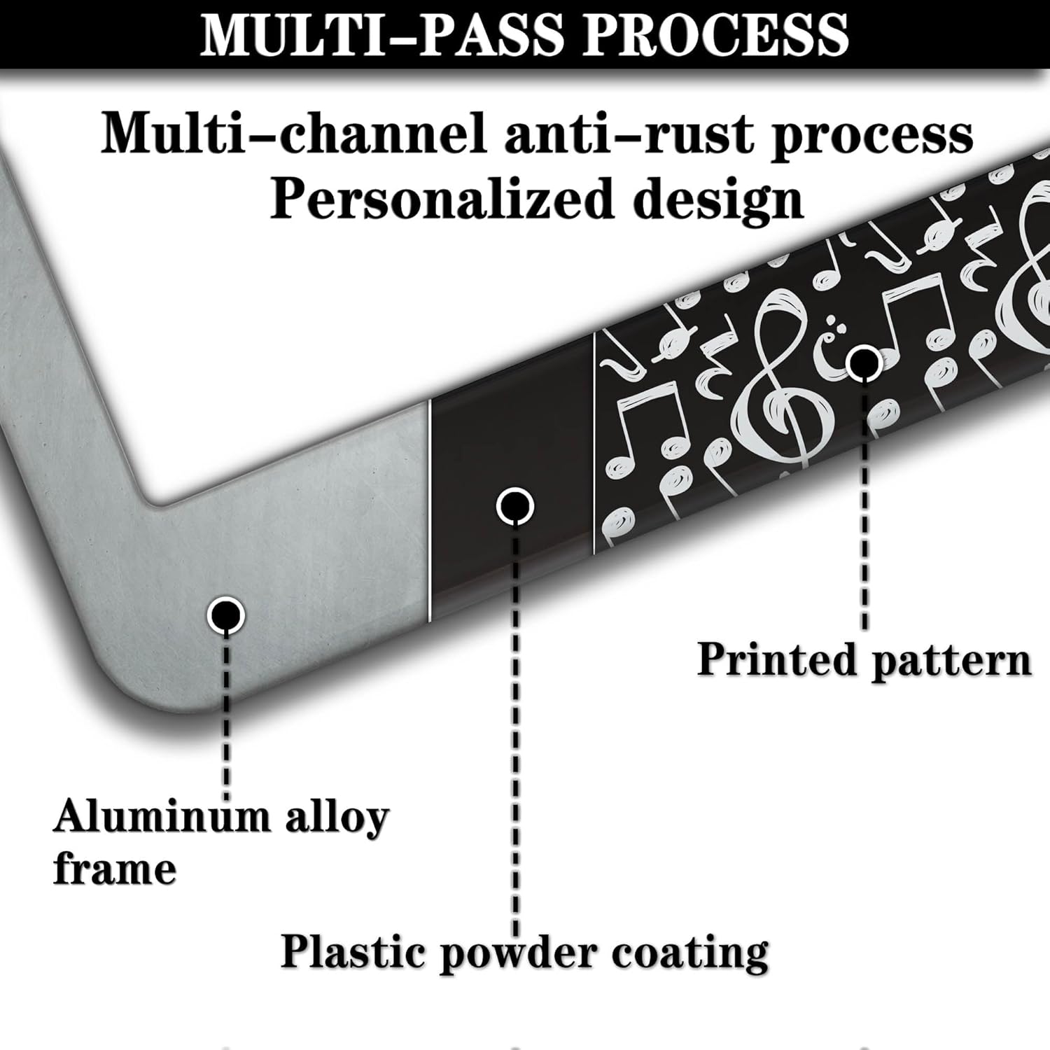 License Plate Cover for Car Black and White License Plate Frames Music Musical Note Aluminum Metal Car Accessory 2 Pack with Screw Covers Set