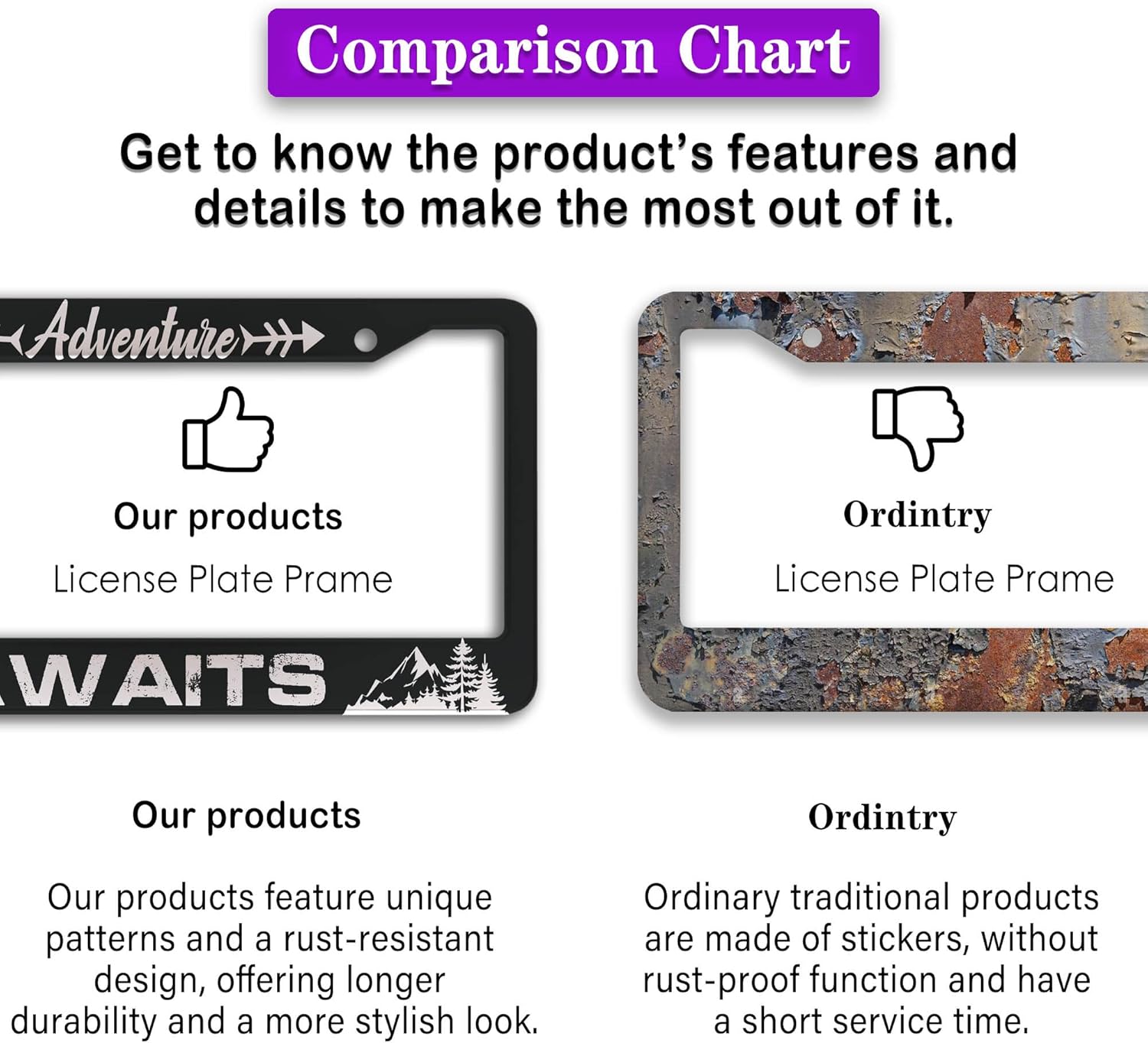 - ALUMINUM FRAME: This License Plate Frame is crafted from high-quality aluminum that is resistant to corrosion, rust, and harsh weather conditions. Its rugged reliability design ensures a long lifespan, making it capable of withstanding car washes and extreme weather, providing you with a reliable and stylish solution for your vehicle.