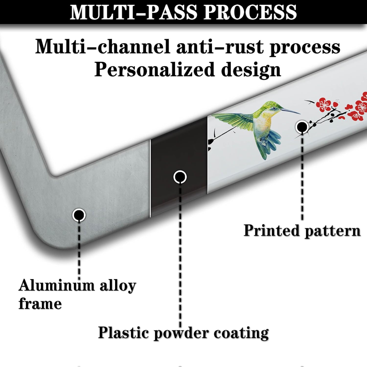 Automotive Exterior Accessories Black, White, and Red License Plate Frames Hummingbird Flowers Universal Aluminum Car Accessory 2 Pack with Screw Covers Set