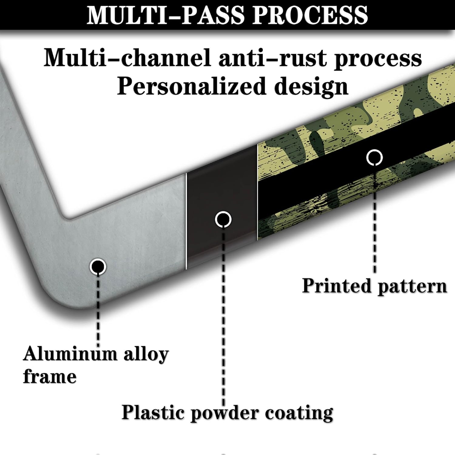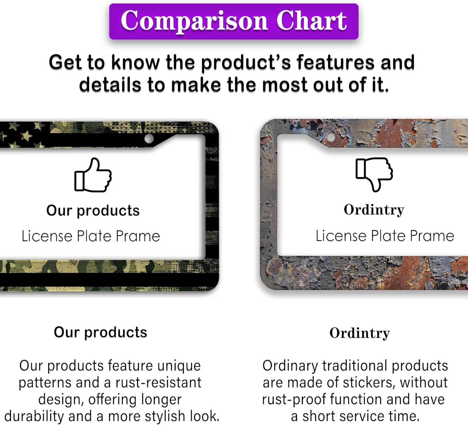 - ALUMINUM FRAME: This License Plate Frame is crafted from high-quality aluminum that is resistant to corrosion, rust, and harsh weather conditions. Its rugged reliability design ensures a long lifespan, making it capable of withstanding car washes and extreme weather, providing you with a reliable and stylish solution for your vehicle.