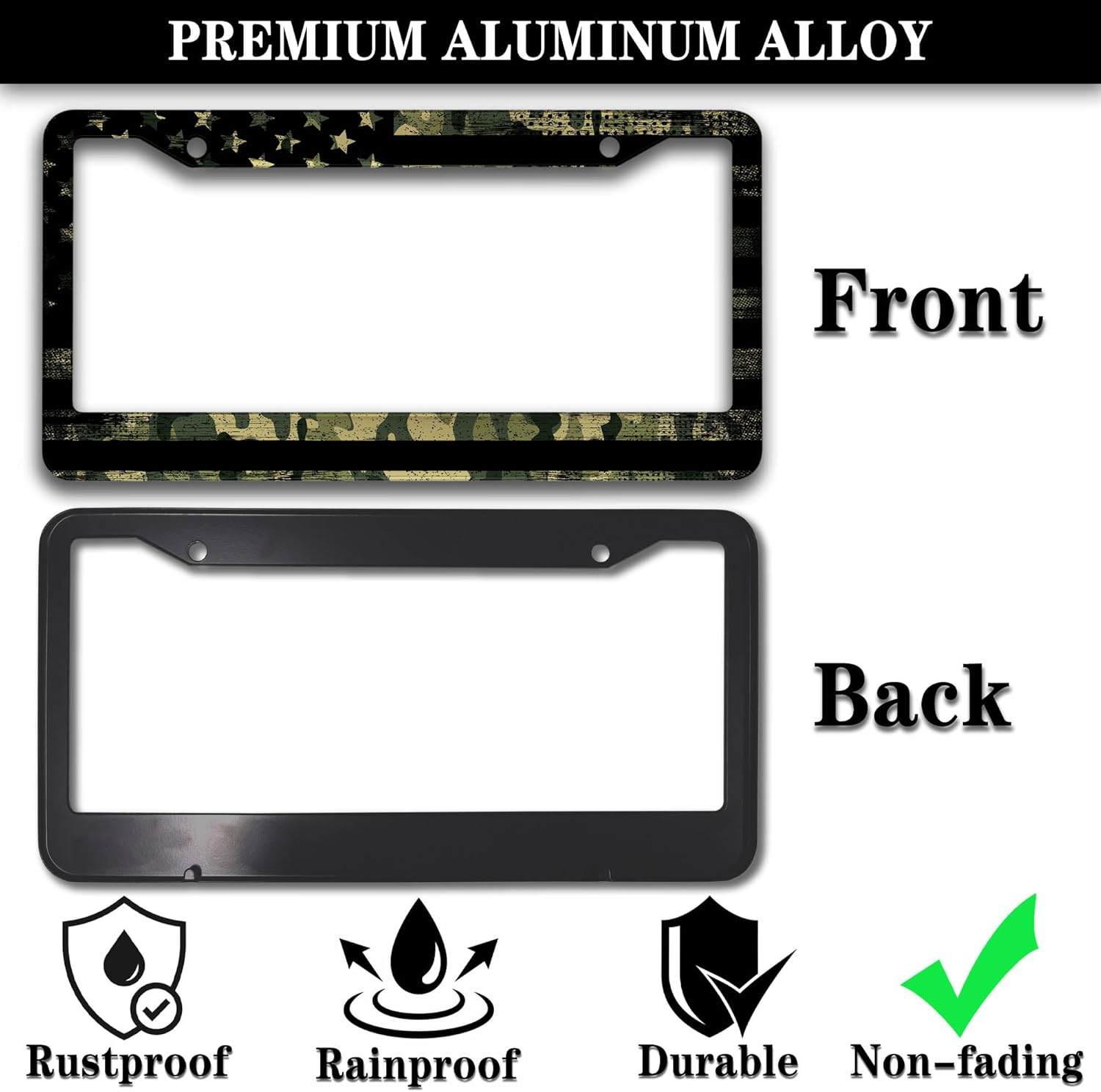 License Plate Frame Multicolor License Plate Holder USA Flag Black Camo Universal Aluminum Car Accessory 2 Pack with Screw Covers Set