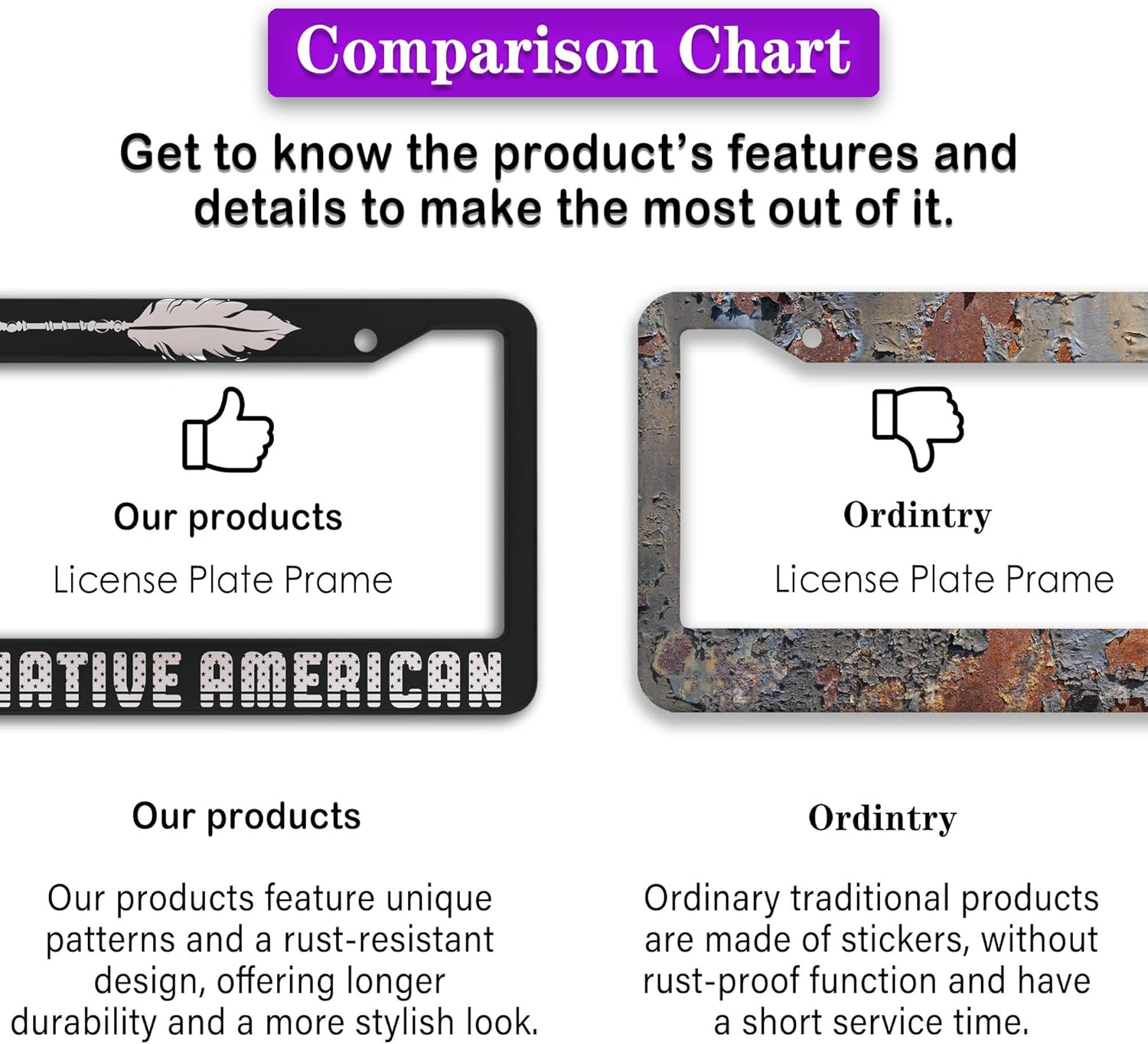 License Plate Frames Black and White License Plate Holder Proud Native American Universal Aluminum Car Accessory 2 Pack with Screw Covers Set