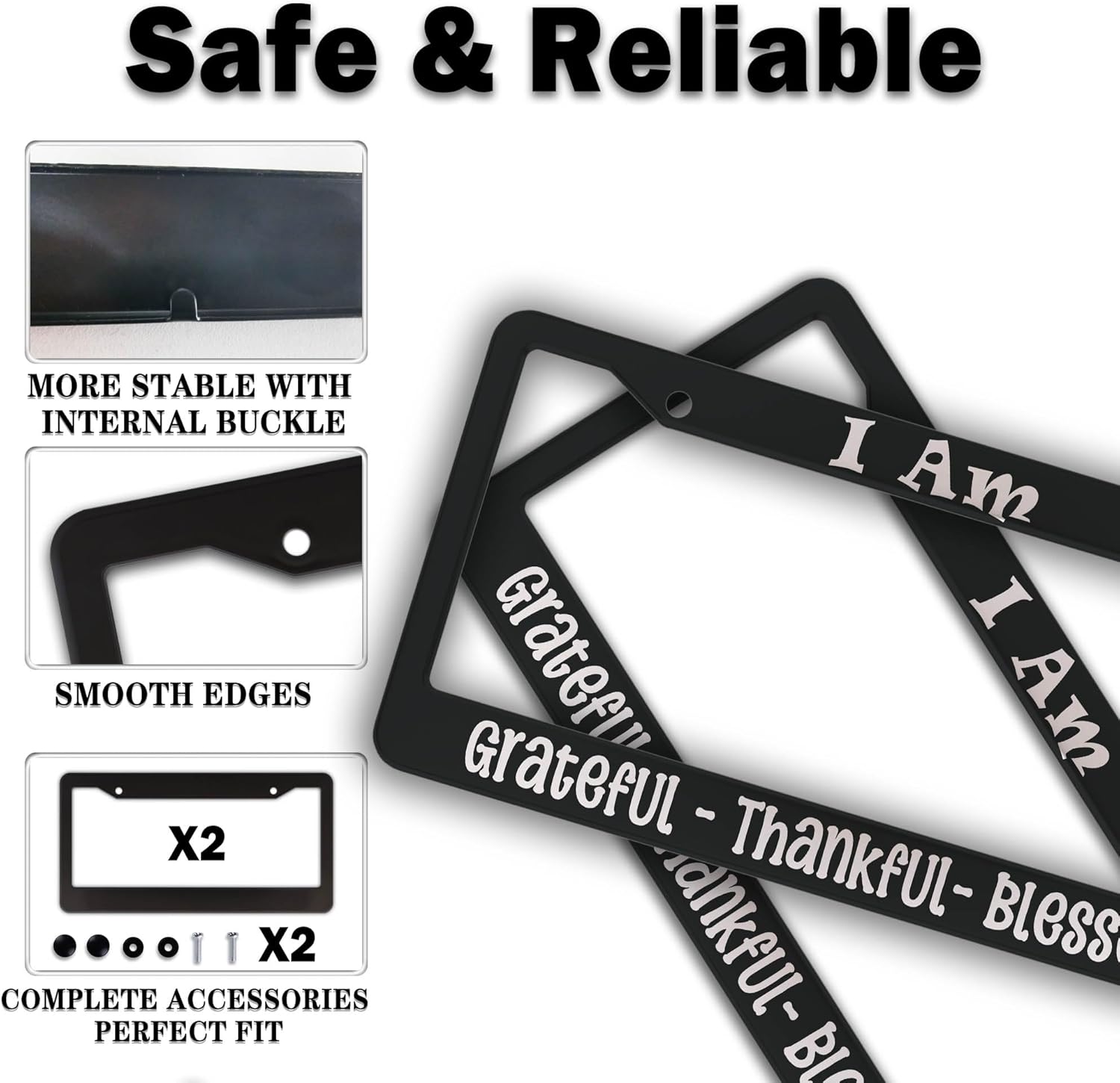 License Plate Frames Black and White Front License Plate Bracket I Am Grateful Thankful Blessed Aluminum Metal Car Accessory 2 Pack with Screw Covers Set