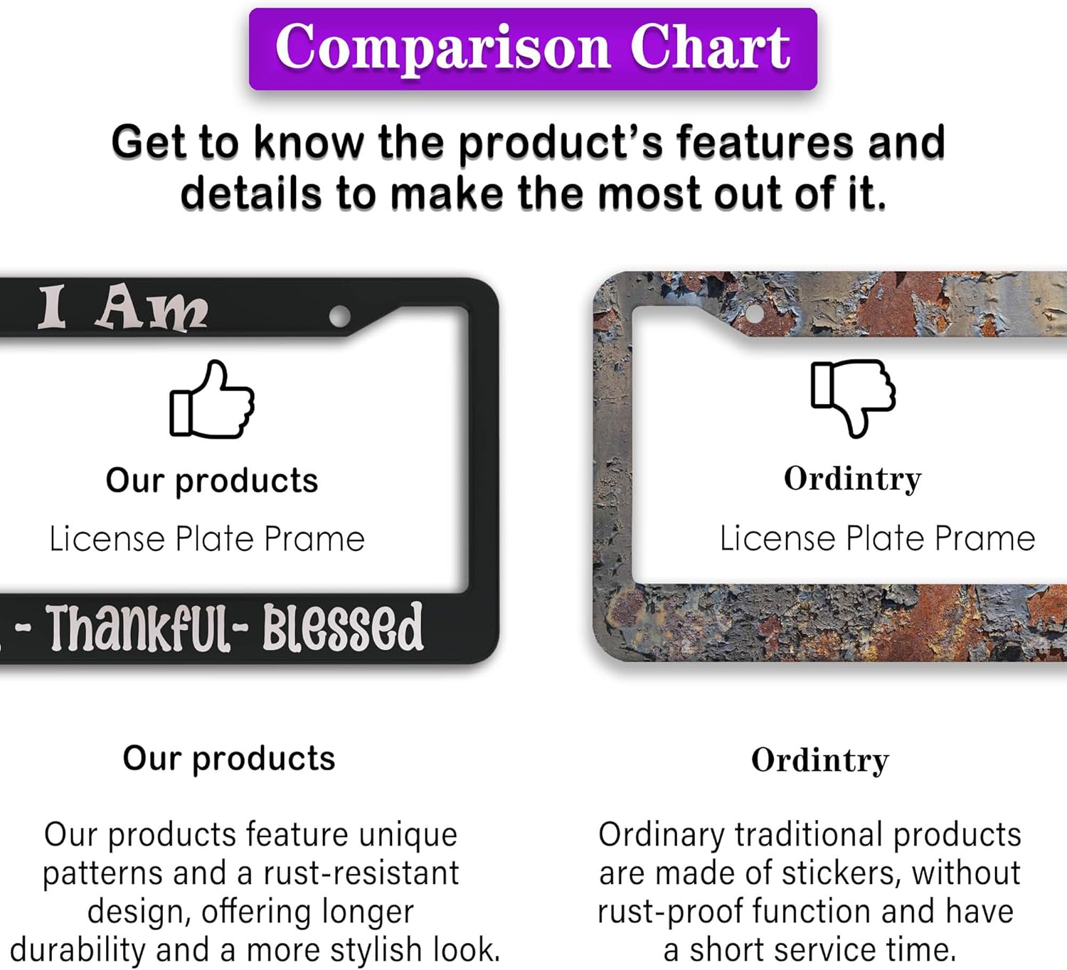 - FUNNY DESIGN: Featuring a unique and customized design, this license plate frame creates an eye-catching and bold statement for your vehicle. Not only does it add a touch of personality to your car, but it also makes for a great holiday gift, souvenir, or decorative piece for family, friends, and colleagues. Elevate your vehicle's style while sharing a laugh!