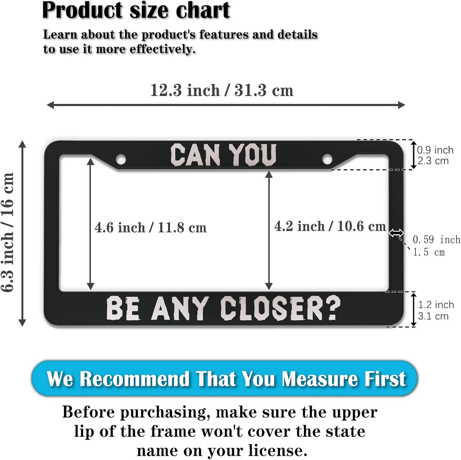 License Plate Holder Black and White License Plate Frames Can You Be Any Closer Aluminum Metal Car Accessory 2 Pack with Screw Covers Set