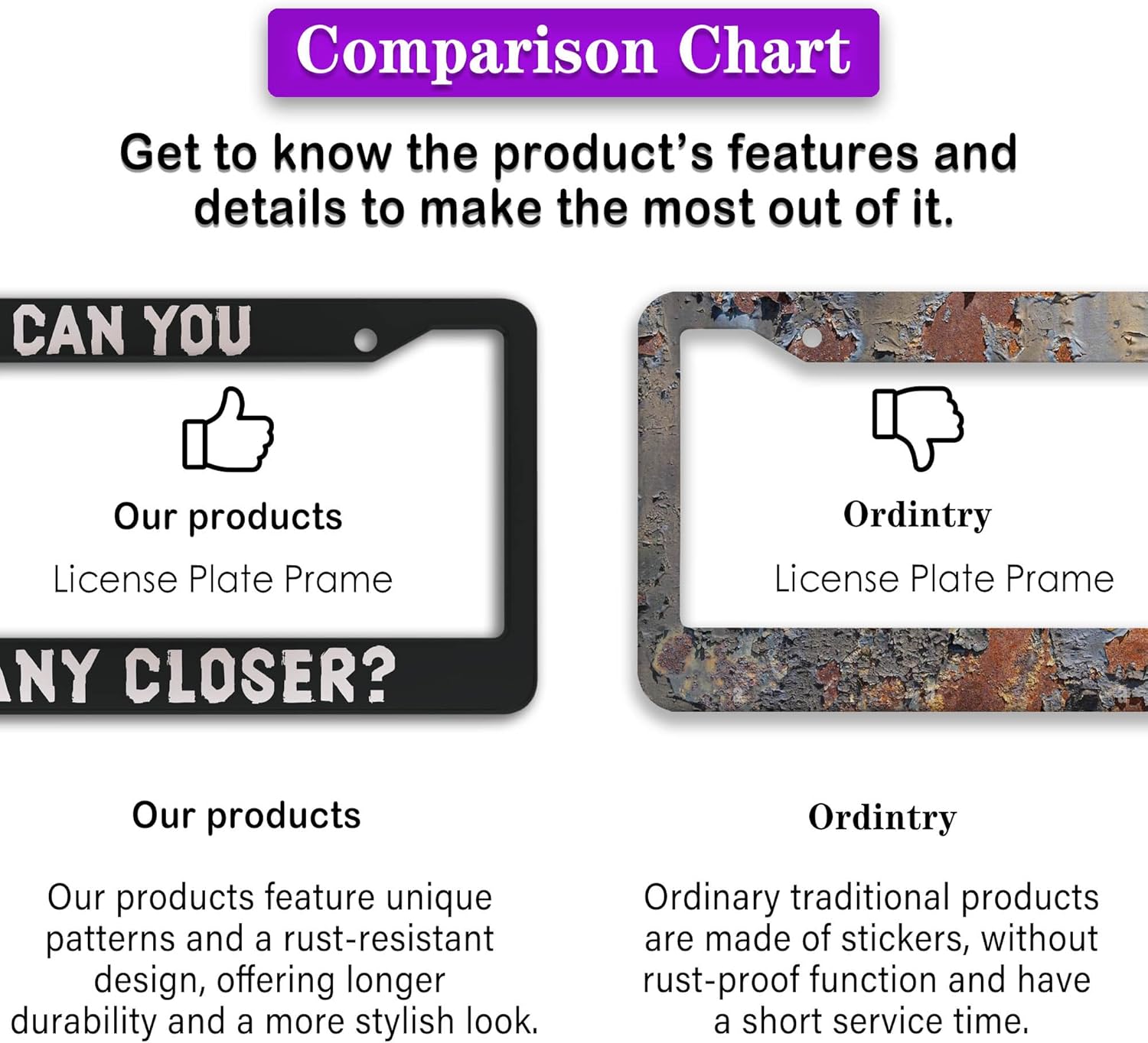 - FUNNY DESIGN: Featuring a unique and customized design, this license plate frame creates an eye-catching and bold statement for your vehicle. Not only does it add a touch of personality to your car, but it also makes for a great holiday gift, souvenir, or decorative piece for family, friends, and colleagues. Elevate your vehicle's style while sharing a laugh!
